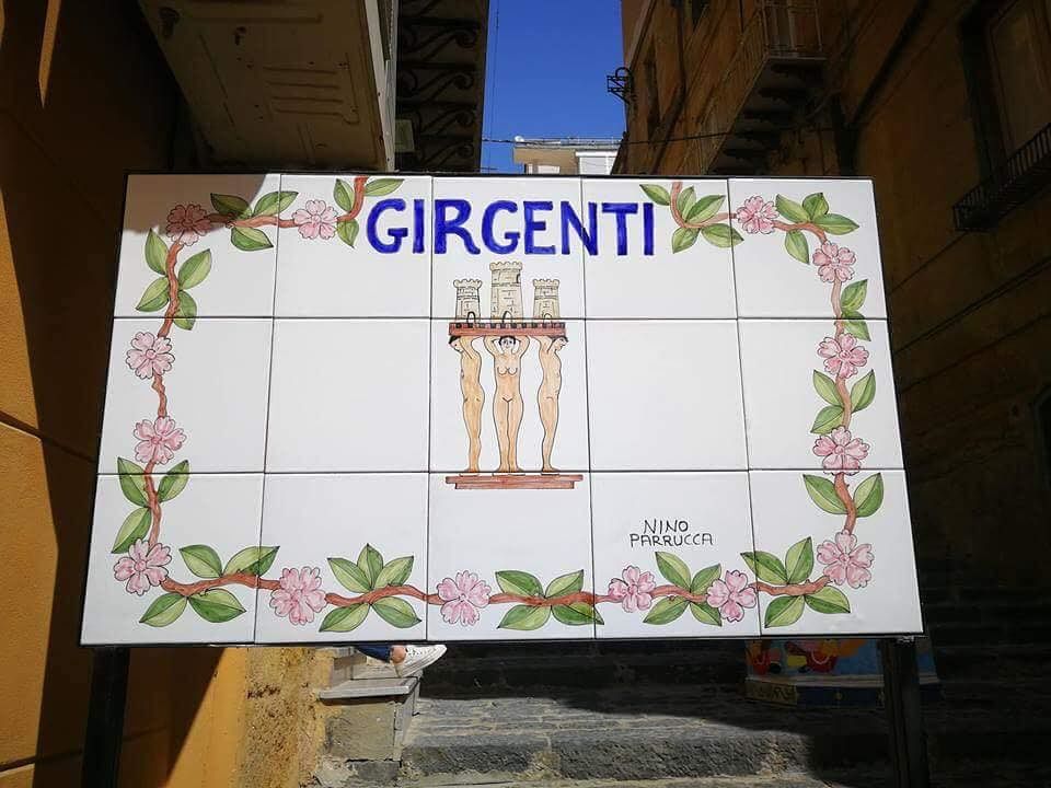 Continua a non piacere agli agrigentini la creazione artistica di Nino Parrucca al quale l’amministrazione Firetto ha affidato il compito di realizzare una targa con scritto Girgenti ed il logo della città da mettere in bella mostra nella scalinata Madonna degli Angeli. A non piacere è proprio il logo dipinto, a detta della maggioranza, non fedelmente. Ma anche le piastrelle che compongono l'”opera” non sono state gradite e anzi considerate da qualcuno “al pari di quelle usate per i rivestimenti dei bagni”.