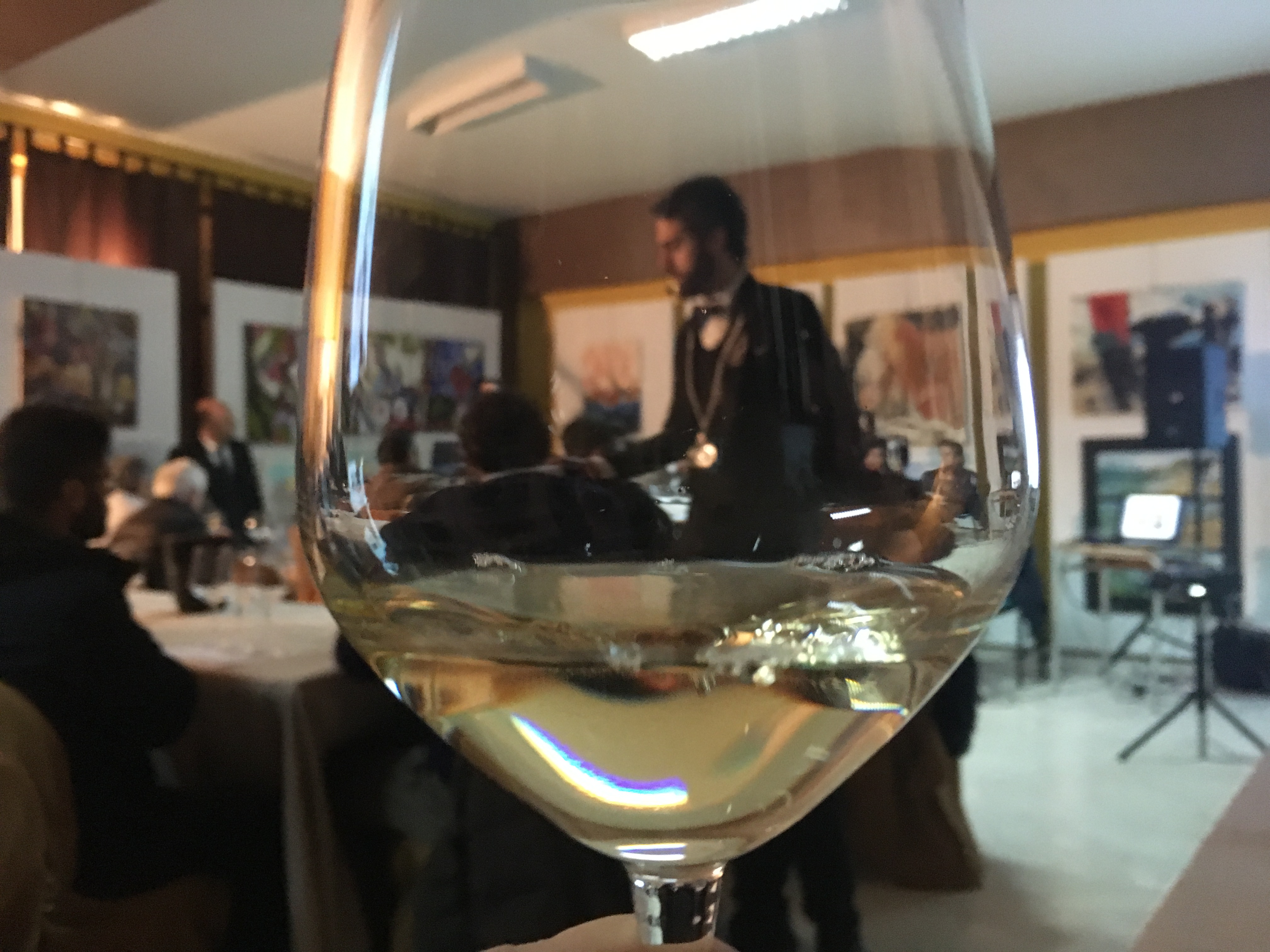 2’ vino in degustazione tecnica dell’azienda Casà (territorio Giardina Gallotti): Inzolia Beauceant biologico certificato dal colore giallo paglierino ,(fiori gialli) molto fruttato al naso, minerale ed equilibrato. In finale bel naso bel palato ottimo abbinamento con il pesce.
