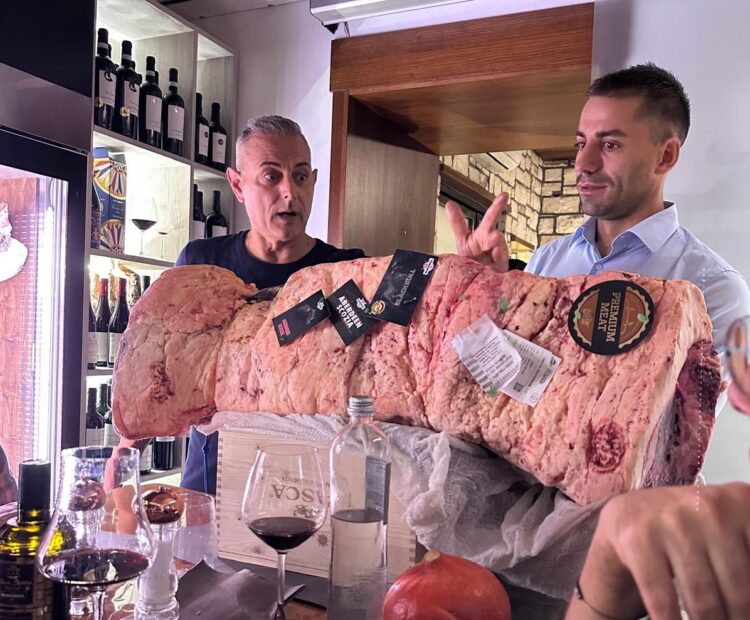 L’evento ha preso il via con una selezione di antipasti, preludio a un menu che ha messo in risalto tre tagli di carne pregiata: Castrone Piemontese, Sashi finlandese e Rubia Gallega, dai più giovani alle frollate. Ogni portata è stata attentamente abbinata a vini come il Primitivo di Manduria e il Negroamaro, che hanno esaltato i sapori dei piatti. Pietro Macaluso, padrone di casa e maestro nella preparazione delle carni, ha condiviso con gli ospiti le caratteristiche uniche di ogni taglio, accompagnando ogni spiegazione con un’attenta analisi degli abbinamenti proposti da De Simone.