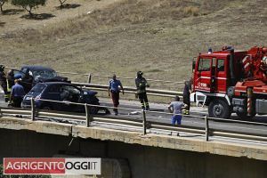 Subito dopo lo scontro, la Fiat Cinquecento sarebbe rimasta in bilico. Il rischio, più che concreto, era che precipitasse dal cavalcavia. I vigili del fuoco del comando provinciale di Agrigento e i carabinieri della stazione di Siculiana hanno cercato di fare il più in fretta possibile per soccorrere i feriti e per mettere anche la Fiat Cinquecento in sicurezza.