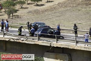 SICULIANA. Gravissimo incidente stradale, poco dopo le 14,40 verificatosi lungo la strada statale 115, sul viadotto Canne, nel tratto compreso tra Siculiana e Montallegro.