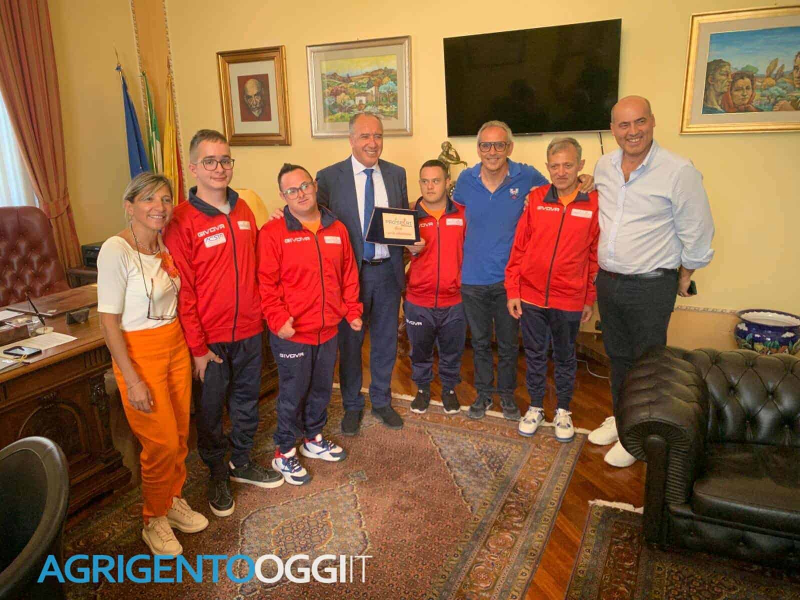 Il presidente del Libero Consorzio Giuseppe Pendolino ha ricevuto, questa mattina, al Palazzo della ex Provincia, gli atleti della Pro Sport Ravanusa, vincitori del titolo nazionale di calcio balilla paralimpico. “Un risultato straordinario per Ravanusa e per lo Sport della provincia di Agrigento – ha sottolineato il presidente Pendolino – che ha premiato questa bellissima realtà sportiva come occasione di inclusione e crescita. Agrigento ha campioni importanti”. Presenti all’incontro, tra gli altri, la consigliera delegata ai servizi Sociali Anna Triglia, il consigliere ed ex sindaco di Ravanusa Carmelo D’Angelo e la dirigente del settore solidarietà sociale Maria Antonietta Testone. Sono numerosi i ragazzi che frequentano i centri di avviamento paralimpico gestiti dall’associazione presieduta da Giancarlo La Greca, instancabile presidente.