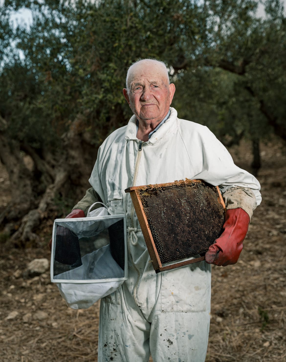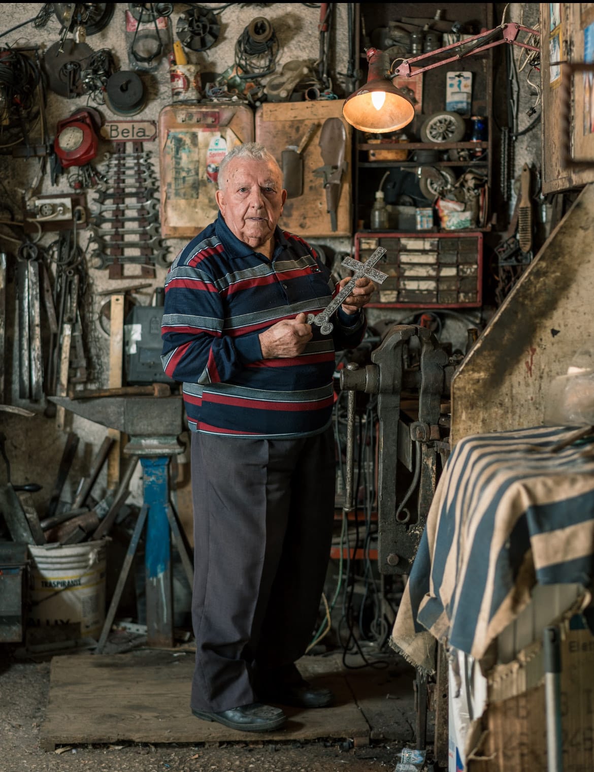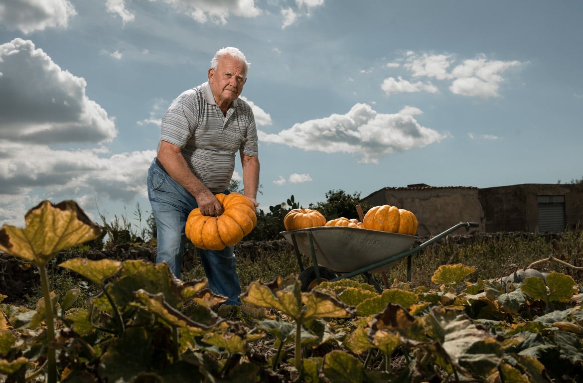 L’obiettivo di Posante cattura mani segnate dal lavoro, sguardi profondi, piccoli gesti quotidiani: un uomo che solleva una zucca appena raccolta, un altro che stringe tra le dita il registro di classe di una vita passata tra i banchi, un fabbro nella sua bottega, un apicoltore tra gli ulivi. Immagini che diventano icone della resilienza e raccontano, con semplicità poetica, l’essenza di un popolo che ha trovato nella sobrietà la propria felicità.