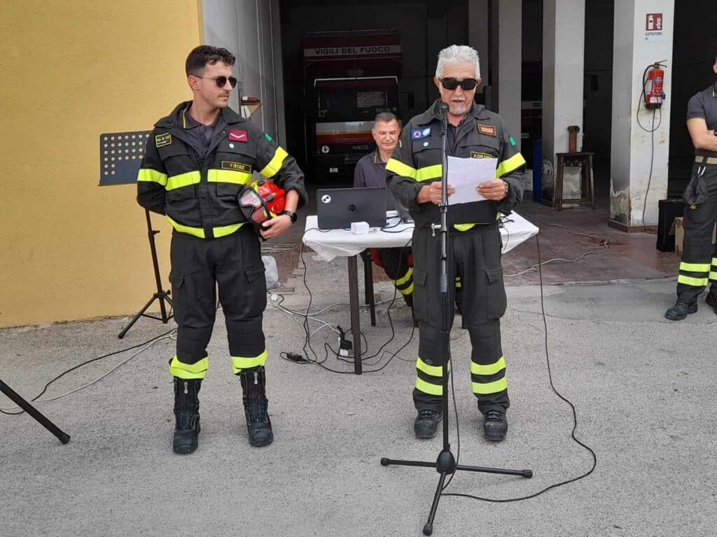 Grande commozione in viale Caduti di Marzabotto per la festa di addio. Stimato e apprezzato da tutti i colleghi il capo reparto Mangione ha saputo svolgere con grande professionalità e competenza tutti gli scenari a cui ha partecipato, con sempre grande dedizione per la divisa che ha indossato. Emozionatissimo poiché nella cerimonia di fine servizio c’è stato il passaggio del casco al figlio Salvatore che seguendo l’esempio del padre ha scelto di servire il paese sotto il segno dell’ascia e della fiamma.