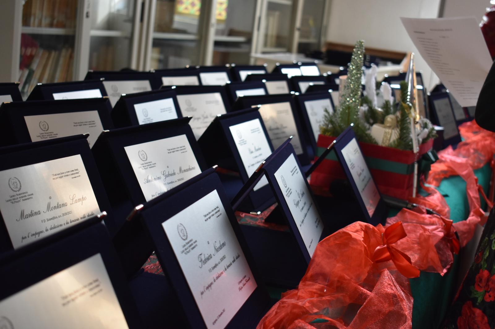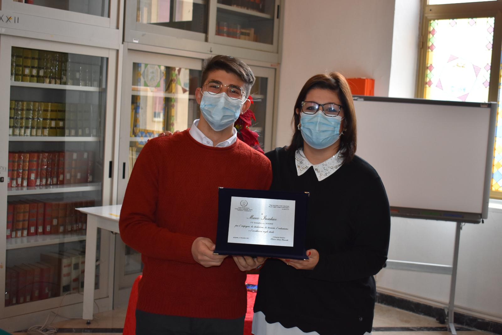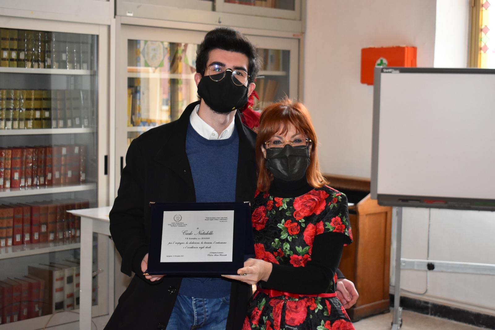 Nell’Aula Magna del Liceo Scientifico e delle Scienze Umane “Raffaello Politi” di Agrigento, questa mattina, 22 dicembre,  si è tenuta la cerimonia di premiazione delle “eccellenze” per gli allievi maturati con il massimo del punteggio negli anni scolastici 2019/2020 e 2020/21.  130 gli studenti di entrambi gli indirizzi che hanno conseguito, dopo un brillante percorso scolastico, il massimo punteggio all’Esame di Stato e sono stati insigniti di una targa onorifica. Con questa iniziativa, ormai tradizione e vanto dell’istituto, il Liceo Politi punta a riconoscere e a valorizzare il merito, strumento principe per raggiungere i più ambiziosi traguardi formativi e concorrere a contrastare atteggiamenti remissivi e fatalistici nei confronti dell’insuccesso scolastico. Dopo la consegna  delle targhe si maturanti dell’anno scolastico 2019/2020, gli allievi e i docenti di tutte le classi hanno sospeso  le lezioni per accedere , in modalità a distanza , ad un momento di riflessione sul senso ed il valore del Natale con Don Baldo Reina, rettore del Seminario Arcivescovile di Agrigento; a seguire, sono state consegnate le targhe agli allievi maturati con il massimo del punteggio nell’anno scolastico 2020/2021 e la cerimonia è stata seguita in modalità on line da tutte le classi.