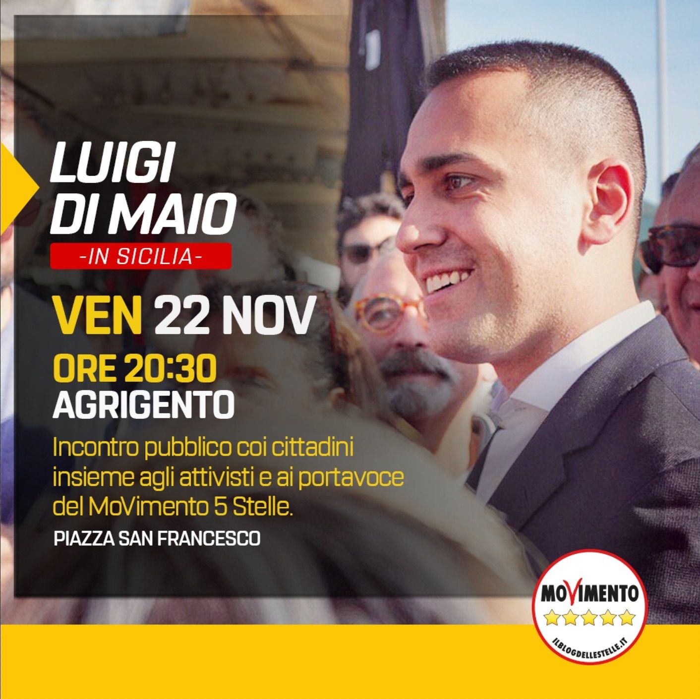 Il Ministro degli Esteri e della Cooperazione internazionale, nonché uno dei leeder del Movimento 5 Stelle, Luigi Di Maio, sarà in vista in Sicilia, e farà tappa nell’Agrigentino, i prossimi 22 e 23 novembre.
