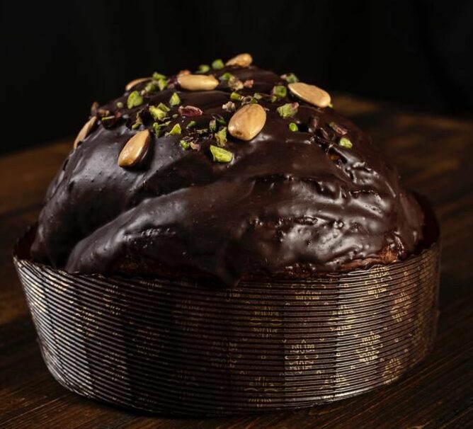 Il nuovo panettone, creato a 4 mani e preparato con le migliori materie prime e con il lievito madre, è farcito con cubetti di arancia siciliana canditi, capperi canditi e una riduzione di Malvasia delle Lipari Doc e rifinito con una golosa copertura di cioccolato all’82% lavorato a freddo da Ciomod, e aromatizzato al fior di sale di Trapani, presidio Slow Food. Altra particolarità del panettone, sono le 7 mandorle dorate sistemate sulla superficie che indicano le 7 isole dell’Arcipelago delle Eolie e la pioggia di granella al pistacchio per ricordare che Salina è l’isola più verde delle Eolie.
