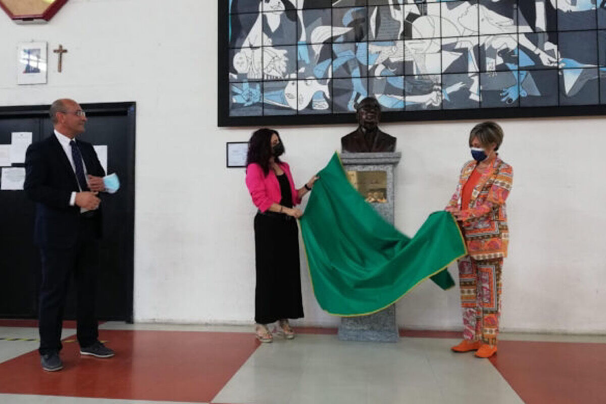 Nel grande salone di ingresso è stato scoperto il busto dello scrittore e regista agrigentino creato dal maestro Salvatore Profetto.
