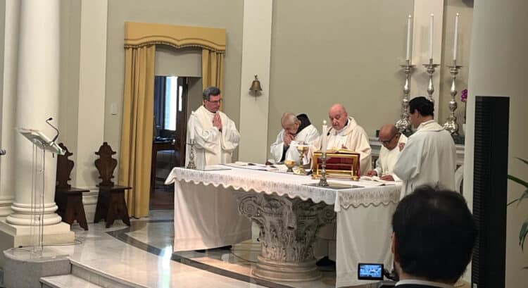 Grande partecipazione alla Santa Messa, svoltasi questa mattina in Vaticano, presso la Chiesa Santa Maria Regina della Famiglia nei giardini Vaticani e celebrata da S.E.R. Cardinale Angelo Comastri accompagnato da quattro concelebranti venuti da più parti d’Italia.