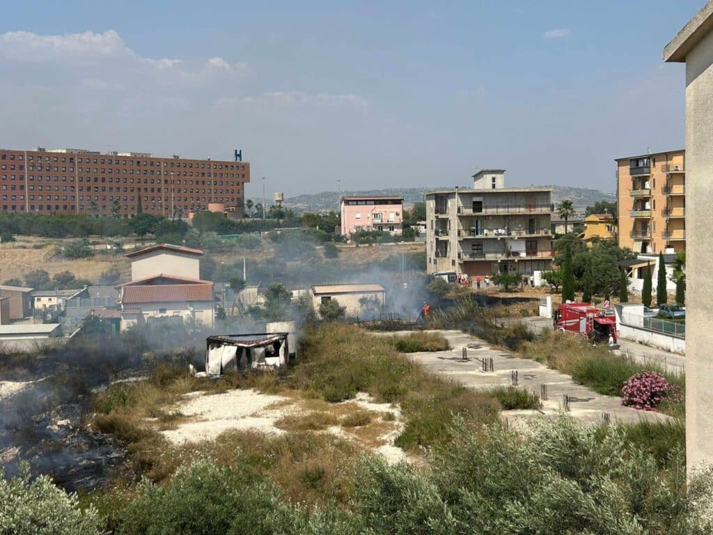 Bruciano le campagne attorno all’ospedale San Giovanni di Dio in contrada Consolida e in località San Michele. Le fiamme si sono sviluppate, nel pomeriggio, da un un terreno di sterpaglie e in poco tempo hanno lambito il parcheggio del presidio ospedaliero e decine di abitazioni, aziende e casolari di campagna. Sono stati i poliziotti della sezione Volanti e della Digos della Questura ad accorrere per primi trovandosi davanti ad un vero e proprio inferno di fuoco.