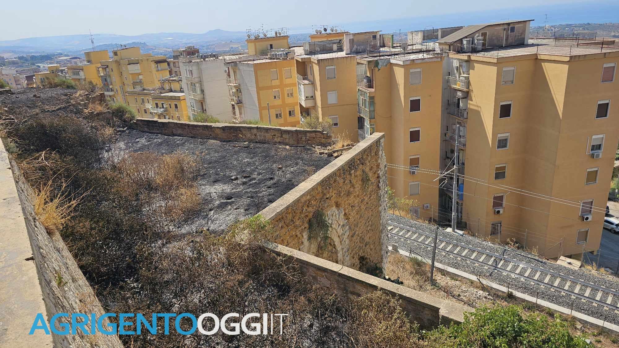 Momenti di panico, ieri mattina, in via Pietro Nenni, meglio nota come via Porta di Mare, ad Agrigento, per un incendio che ha carbonizzato l’area a valle del belvedere che si affaccia sui binari della ferrovia. Le fiamme, probabilmente di natura dolosa, in poco tempo  si sono estese  fino a lambire una palazzina.
