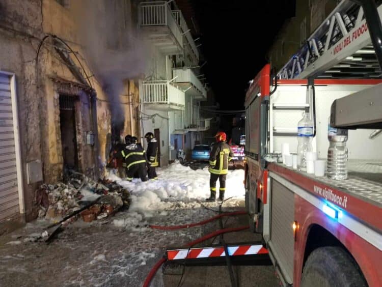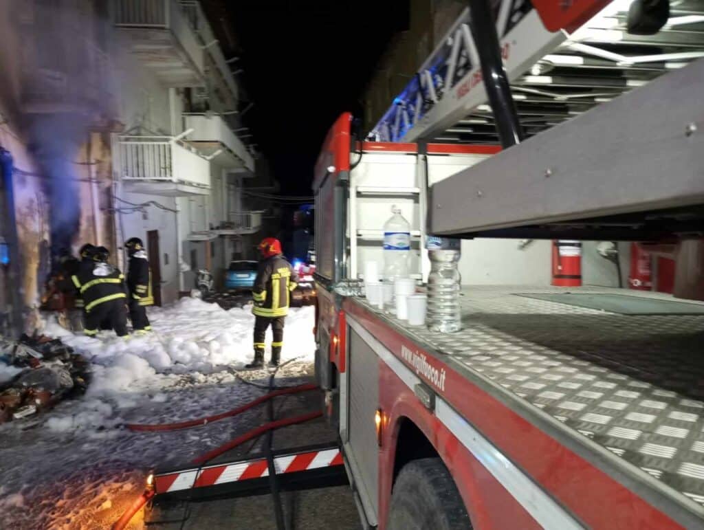 Avuto il riscontro negativo, idranti alla mano hanno domato le fiamme. L’opera di spegnimento è durata oltre quattro ore. Continua ancora in mattinata la bonifica e lo smassamento dei cumuli di macerie bruciate. L’intervento tempestivo dei vigili del fuoco ha evitato il propagarsi delle fiamme agli altri vicini immobili. Nessun dubbio sul fatto che le fiamme siano state appiccate da qualcuno. I carabinieri hanno avviato le indagini.