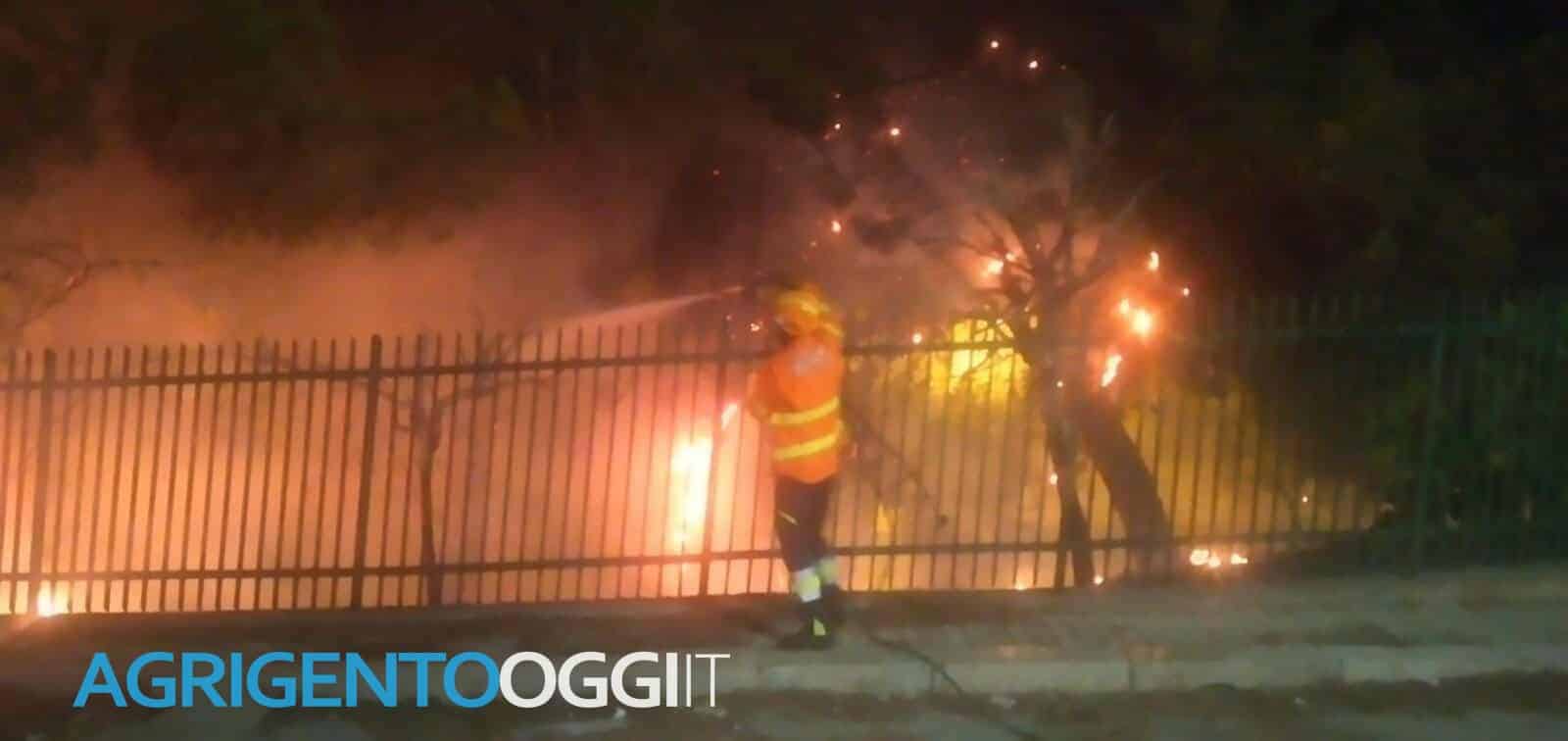 Un incendio divampato ieri sera ha interessato l’area in prossimità della scuola “Milani” a Palma di Montechiaro. Le fiamme, alimentate dagli aghi di pino che hanno preso fuoco con estrema rapidità, avrebbe potuto avere conseguenze drammatiche se il rogo si fosse propagato agli alberi vicini. Grazie all’efficiente e tempestivo intervento del “Sistema Comunale” di Protezione civile, guidato dall’arch. Lillo Inguanta, e all’azione immediata di due squadre di volontari con i rispettivi mezzi l’incendio è stato prontamente circoscritto e domato, in attesa dell’arrivo dei Vigili del fuoco, che hanno potuto completare le operazioni di spegnimento in sicurezza. Provvidenziale l’intervento del Gruppo Comunale di Protezione Civile coordinato da Franco Sorintano ed I Falchi guidati da Ignazio Arcadipane.
