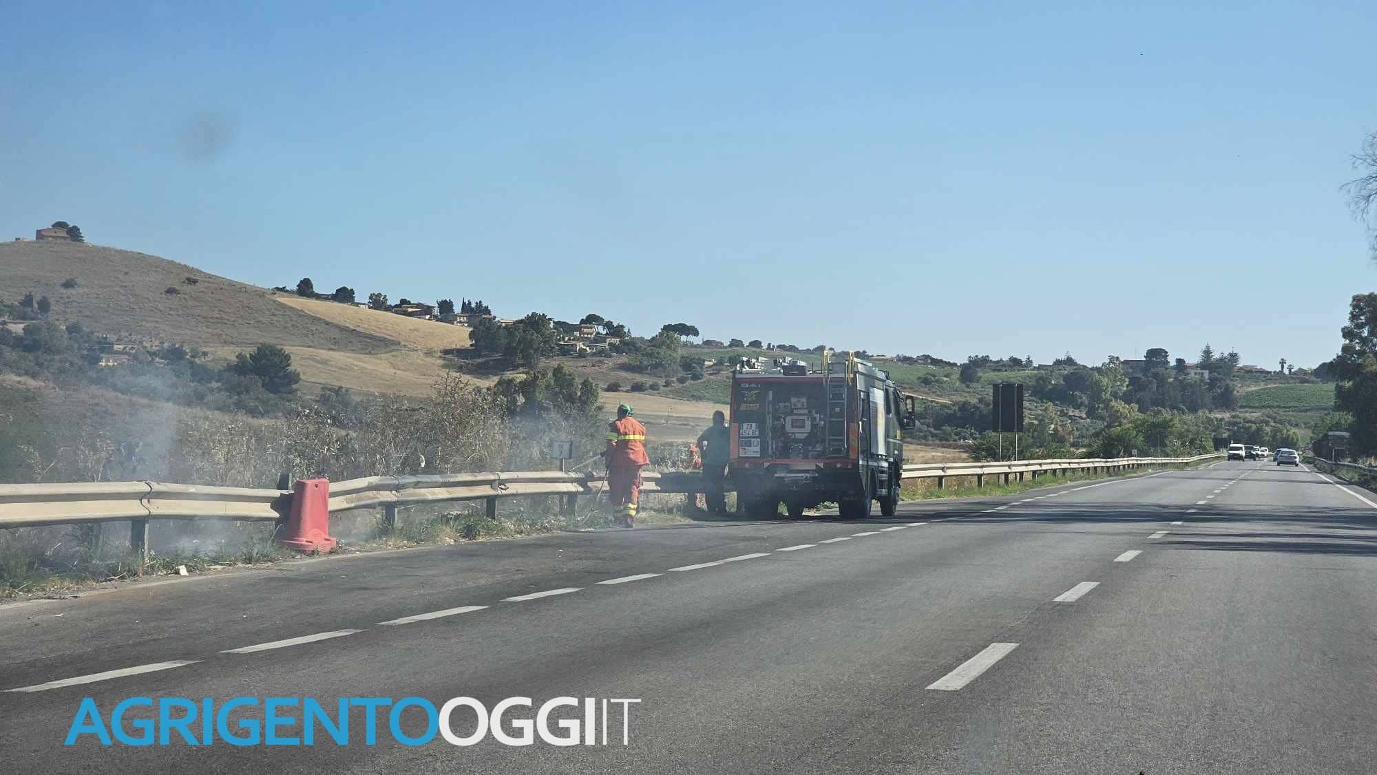 Un vasto incendio si è sviluppato nella zona a valle della strada statale 640 poco dopo la rotatoria di Giunone nei pressi della Valle dei Templi, in prossimità del pericolosissimo svincolo per Mosella. E’ successo ieri pomeriggio. A bruciare sterpaglia, alberi e varia vegetazione. La colonna di fumo, visibile da più parti, anche dalle campagne tra il Villaggio Mosè e Favara, ha invaso la trafficata arteria provocando notevoli disagi ai veicoli di passaggio. Immediato l’intervento del personale della Forestale e dei vigili del fuoco che, dopo circa due ore di incessante lavoro, sono riusciti a spegnere le fiamme.