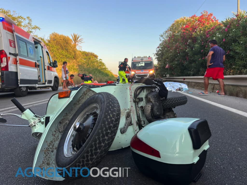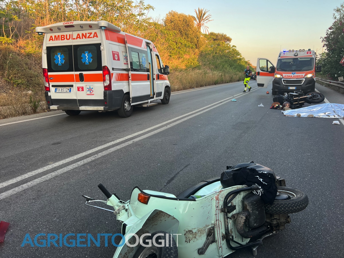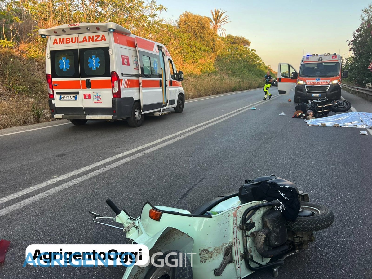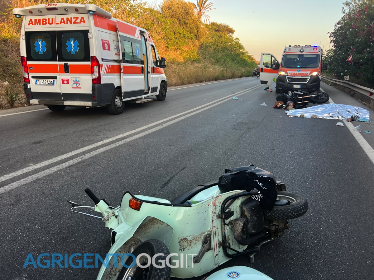 Un tragico incidente stradale si è verificato oggi poco dopo le 19 sulla SS 115, all’altezza di contrada Caos Villaggio Pirandello, in direzione Porto Empedocle. Nello scontro tra una motocicletta di grossa cilindrata e un Vespone, un pensionato Pierluigi Vaccarezza di anni 75 di Genova, ha perso la vita e altre due persone sono rimaste ferite.