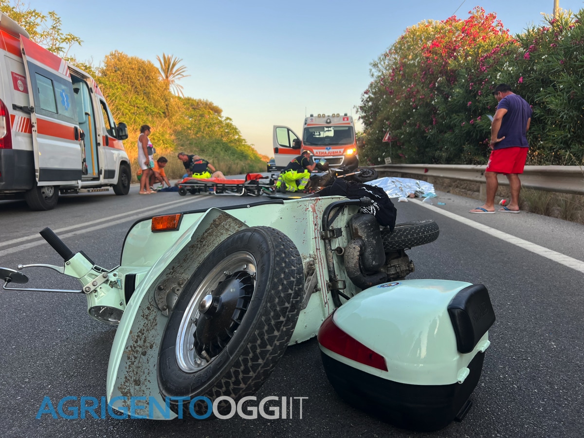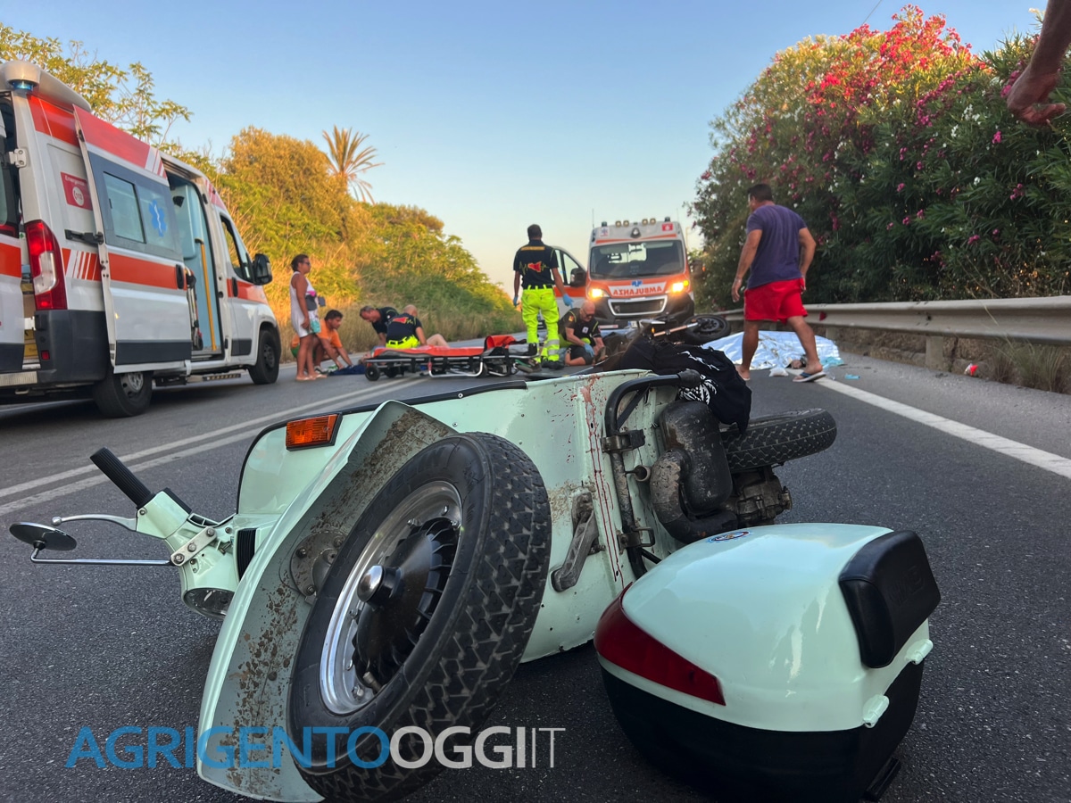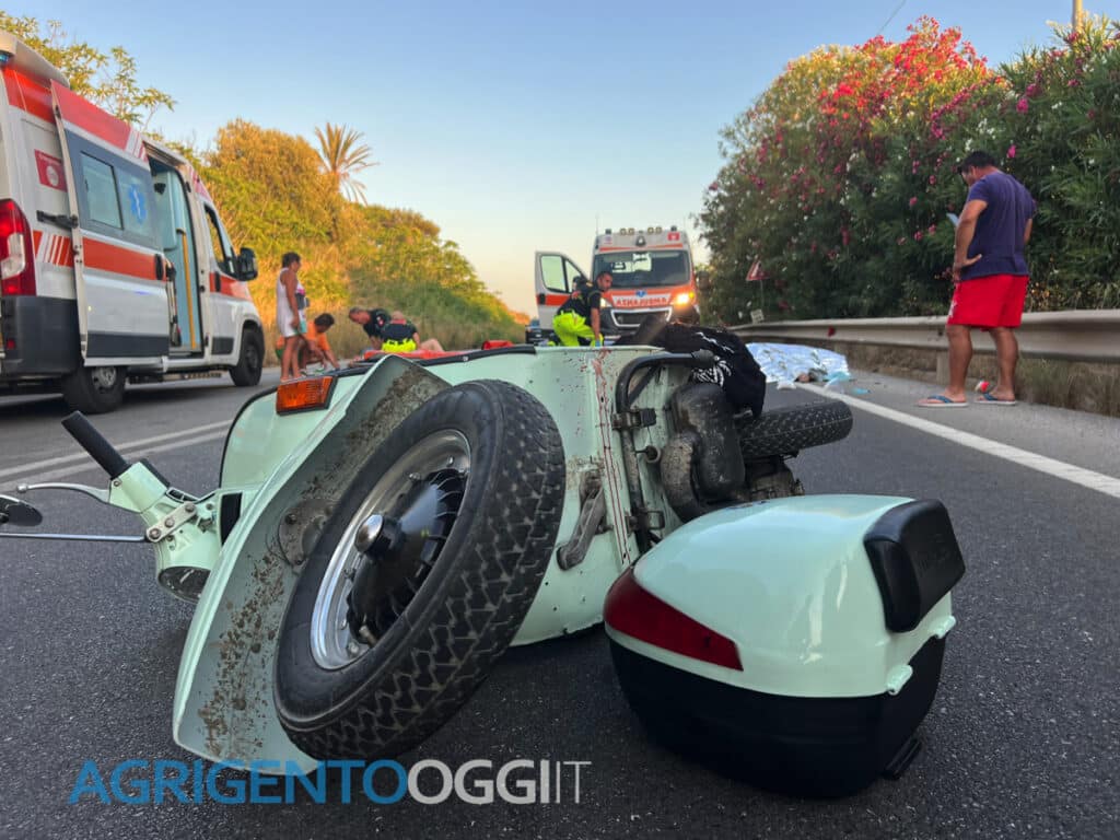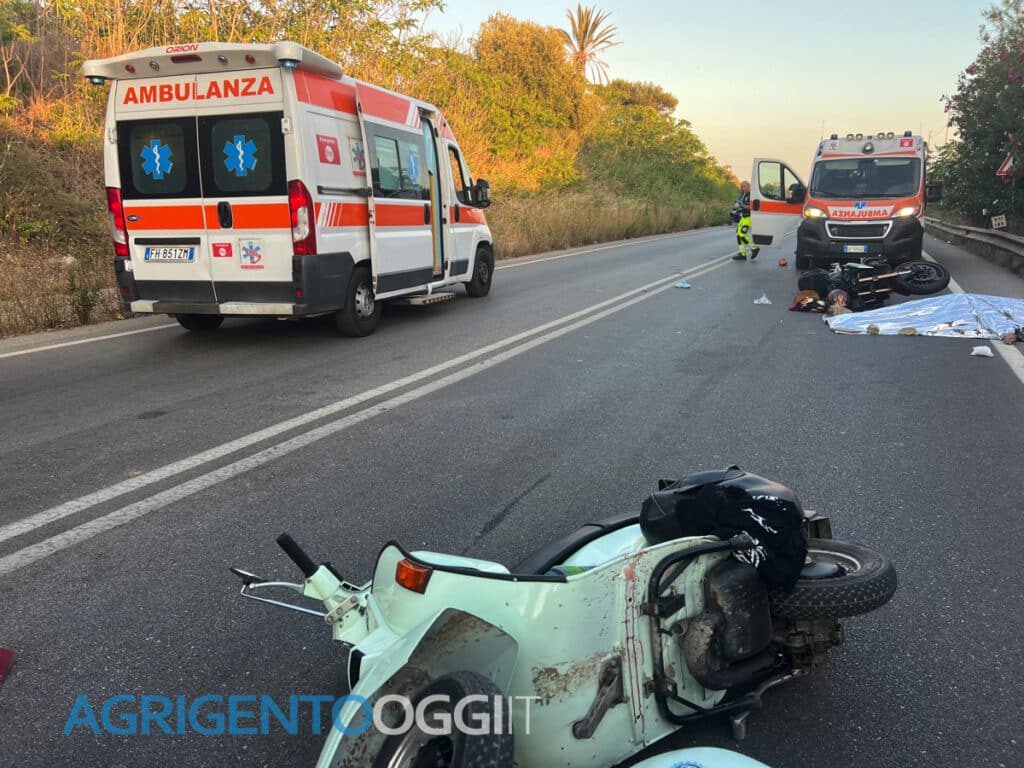Un tragico incidente stradale si è verificato oggi poco dopo le 19 sulla SS 115, all’altezza di contrada Caos Villaggio Pirandello, in direzione Porto Empedocle. Nello scontro tra una motocicletta di grossa cilindrata e un Vespone, un pensionato Pierluigi Vaccarezza di anni 75 di Genova, ha perso la vita e altre due persone sono rimaste ferite.