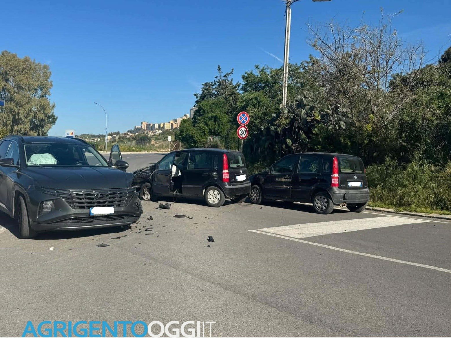 Maxi scontro, questa mattina, tra le vie Petrarca e Passeggiata Archeologica nei pressi della Promenade ad Agrigento. Tre persone sono rimaste ferite nell’incidente stradale che ha coinvolto due Fiat Panda e una Hyundai.