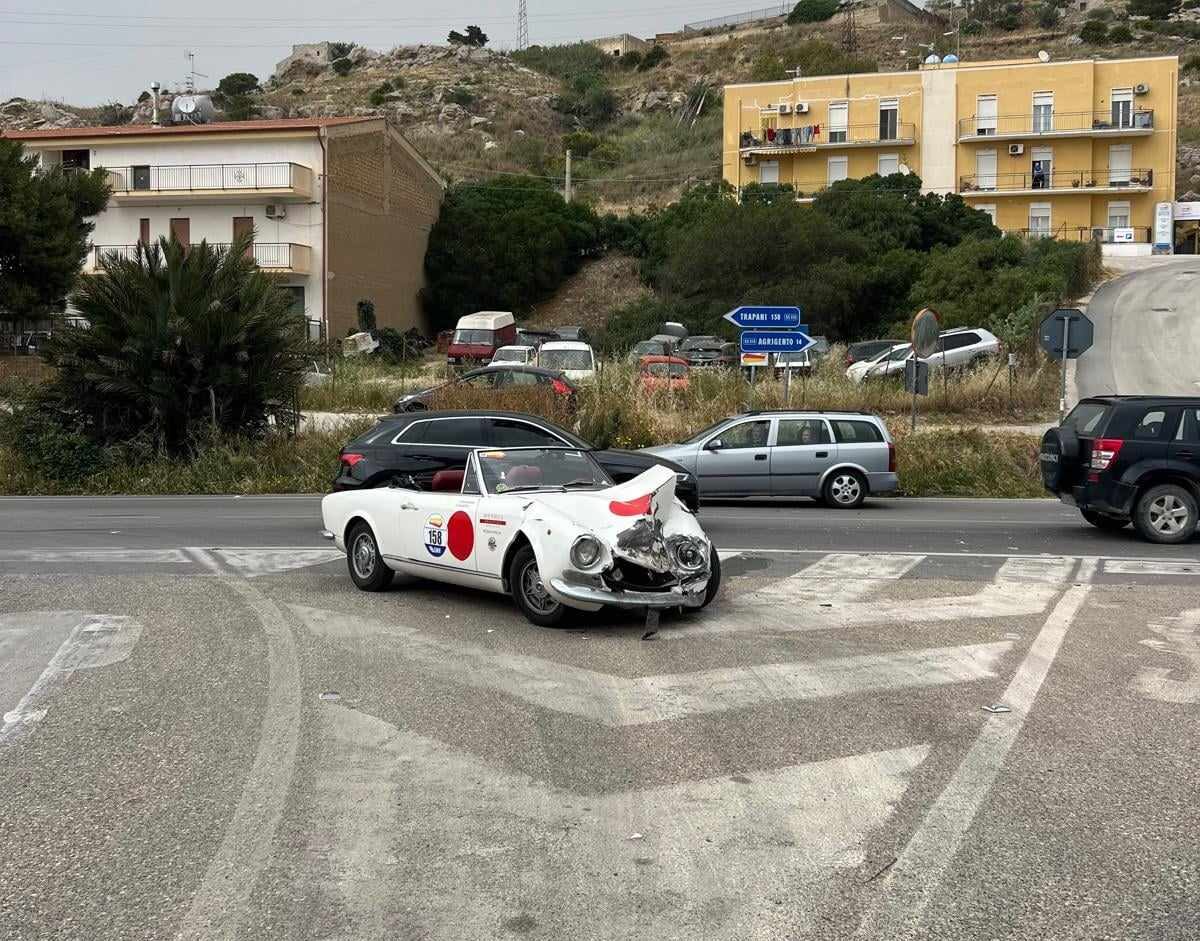 Incidente stradale lungo la statale 115, all’altezza del bivio per Realmonte, l’ennesimo che si verifica in questo tratto. Coinvolta un’auto storica partecipante all’edizione 2024 del Giro di Sicilia che proprio oggi ha fatto tappa nell’Agrigentino. A parte il grosso spavento, anche a causa del violento impatto con un autocarro, non vi sarebbero feriti. La vettura storica ha riportato danni importanti.