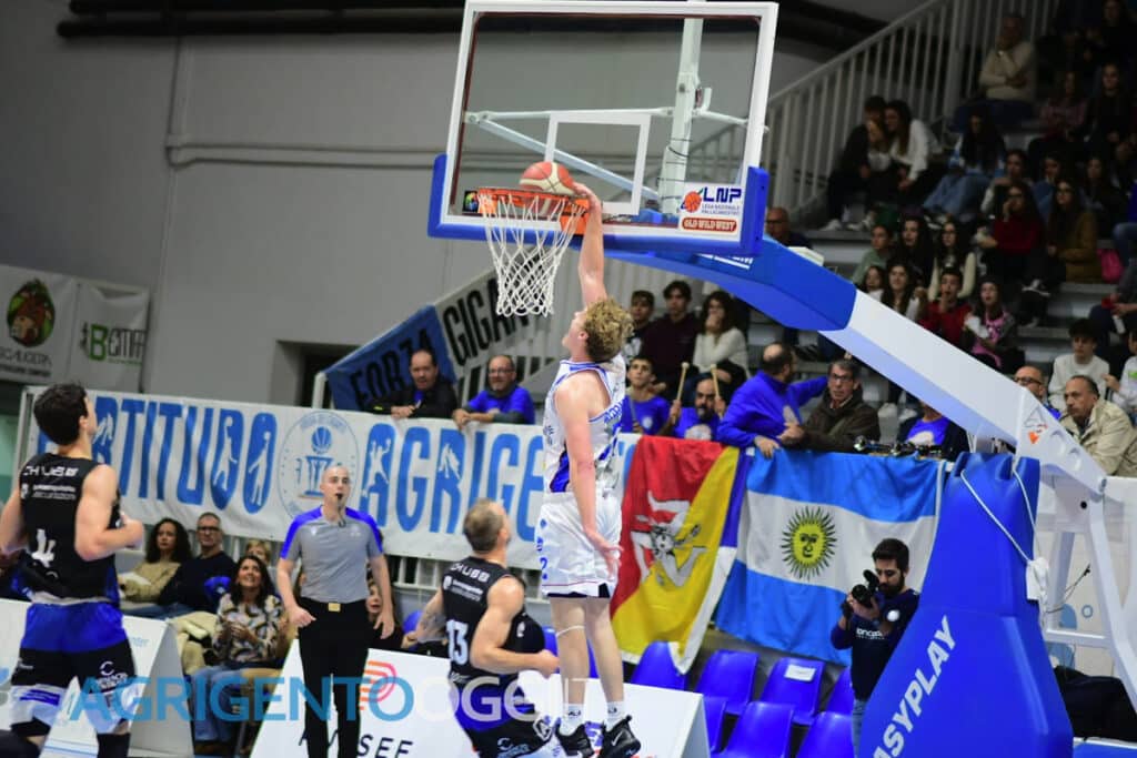 L’ultima giornata del girone d’andata della regular season di A2 di pallacanestro metteva di fronte la Fortitudo Agrigento e il Latina Basket. I biancazzurri, reduci da due sconfitte in trasferta e privi del capitano Chiarastella, erano chiamati al pronto riscatto contro una diretta concorrente in chiave salvezza. Di contro, i nerazzurri – guidati dal nuovo coach Giancarlo Sacco e sotto di due punti in classifica – puntavano a sfatare il tabù del PalaMoncada (l’ultima vittoria dei pontini risaliva al marzo del 2016) e ad agganciare Agrigento in classifica. La vince nettamente Agrigento trascinata da Jacob Polakovich autore di una doppia-doppia da 22 punti e 12 rimbalzi e 32 di valutazione. Brillano anche Ambrosin con 22 punti, Cohill con 21 punti e Morici anche lui in doppia-doppia da 10 punti e 11 rimbalzi. Per i nerazzurri ci sono 16 punti di Gaines, 15 di Cicchetti, 12 di Parrillo e 11 a testa per Moretti e Alipiev. Non c’è Chiarastella nello starting five di Damiano Pilot che manda in campo Cohill, Meluzzi, Ambrosin, Peterson e Polacovich; Giancarlo Sacco risponde con Romeo, Gaines, Parrillo, Moretti e Alipiev. Primo quarto equilibrato. Le due squadre lottano punto a punto per buona parte della frazione. Gli ospiti, tuttavia, trascinati da Gaines e da un ottimo Cicchetti sono bravi a piazzare lo sprint con cui chiudono avanti (21-26). Nella seconda frazione arriva la reazione dei padroni di casa. Trascinati da Cohill e Polakovich entrambi già a quota dieci punti, i biancazzurri piazzano un parziale di 7 a 0 che costringe coach Sacco a richiamare i suoi. Il match si incattivisce con continue chiamate arbitrali che aumentano la tensione tra le due squadre. Agrigento è lucida quel tanto che basta per archiviare la prima parte di gara avanti di un possesso (36-34). Il terzo quarto è di marca biancazzurra: Agrigento è in totale controllo e sale a +13 (61-48). Sul versante opposto, Latina – trascinata da un ottimo Cicchetti – prova a ricucire ma è ancora all’inseguimento. La terza sirena fissa il punteggio di 64-55. Negli ultimi 10′ Agrigento mette il turbo: il trio Ambrosin, Cohill e Polakovich trascina la Fortitudo alla vittoria nonostante Latina tenti più volte di ricucire e al tempo stesso di contenere lo scarto più basso possibile ai fini della differenza canestri. Finisce 88 a 77. I biancazzurri adesso sono al giro di boa: domenica 3 dicembre al PalaSojourner di Rieti (palla a due alle 18) match contro la Real Sebastiani.