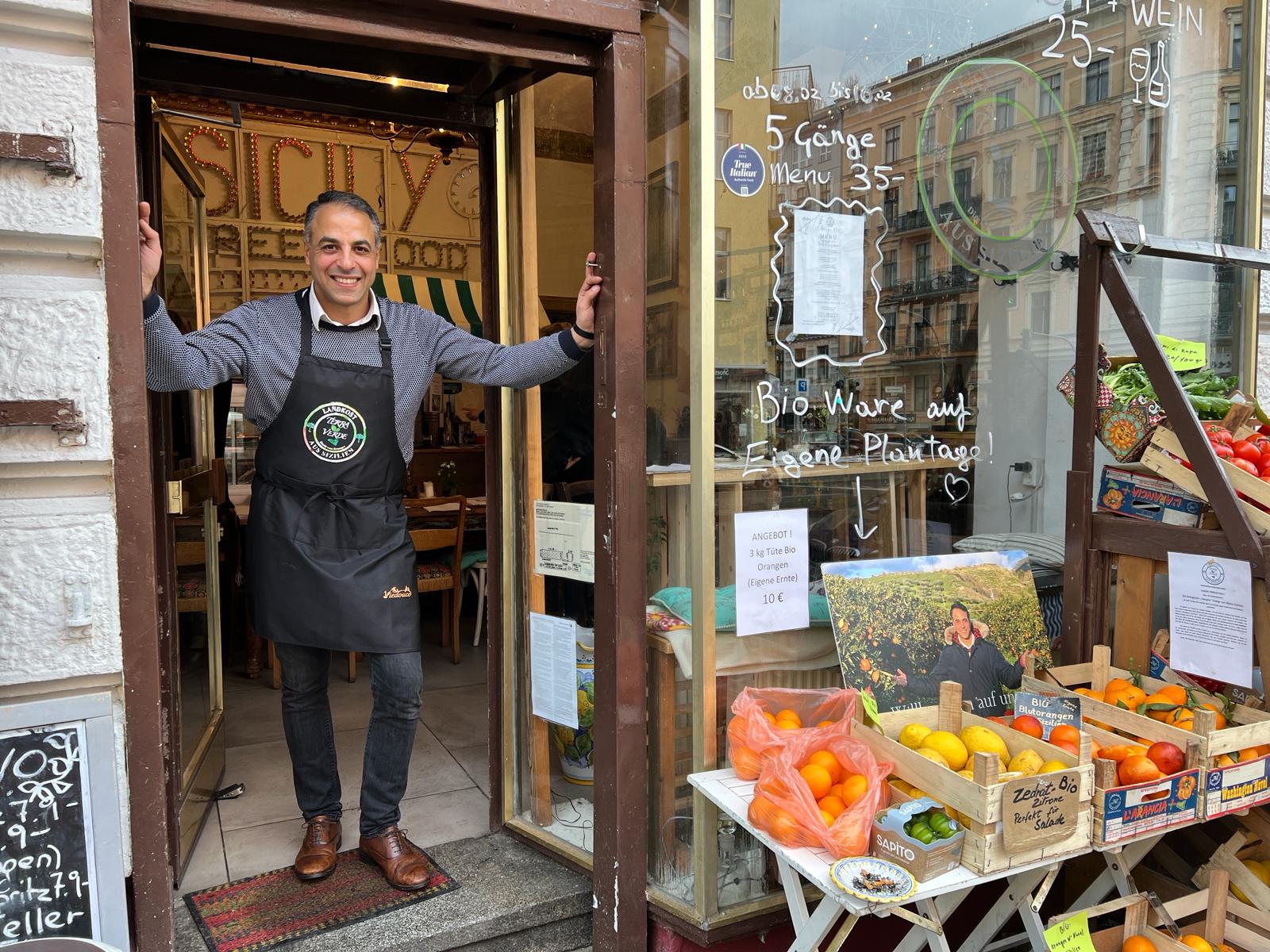 Terra Verde si trova nel quartiere Schöneberg, noto per essere un luogo culturale frequentato da artisti. Non è difficile imbattersi nel locale di Sparacino, dove attori, artisti, musicisti e fotografi sono attratti dall’eccellente qualità dei prodotti e dalle doti di accoglienza tipicamente siciliane del proprietario, arrivato quasi venti anni fa da Ribera.