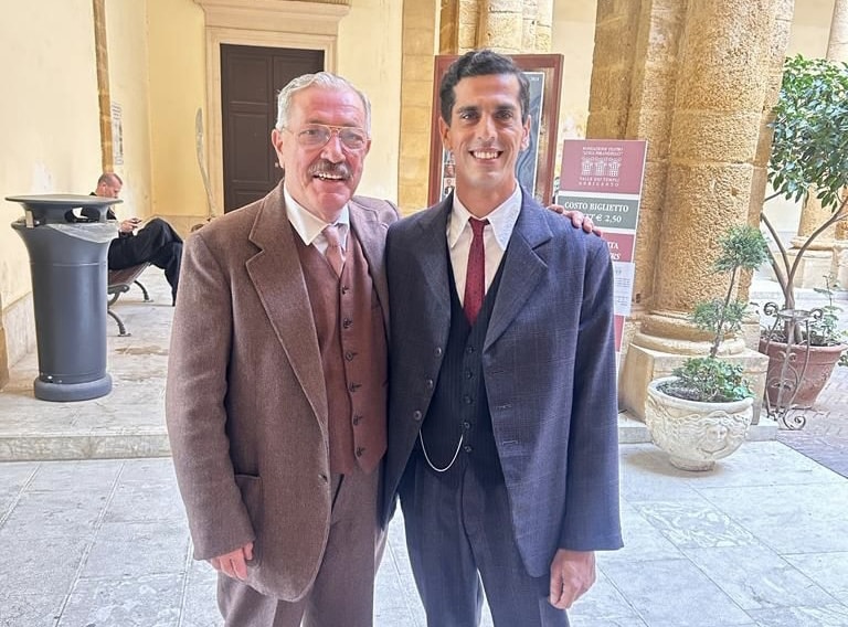 Tra i numerosi figuranti che hanno dato vita al film di Michele Placido, c’è un nome che brilla come una “figurazione speciale” a tutto tondo: Dario Sammartino. Con ben due ruoli, uno come la “maschera del teatro” e l’altro come parte del pubblico che fa l’entrata nel teatro, Dario ha portato la sua energia e la sua passione al set. La sua esperienza davanti alle telecamere è ricca e variegata, con ruoli parlanti, come quello nel prossimo film “Luka”, in uscita a novembre 2023, al fianco di Geraldine Chaplin. Dario, che si è appena trasferito da Madrid dopo la registrazione di “The Voice” Spagna, ha anche un background come modello pubblicitario e si esibisce come cantante tributo ad Elvis, rientrando tra i dieci migliori d’Europa nella sua categoria. Nella foto, lo vediamo insieme al suo suocero, Paolo Capizzi, l’unico riberese a far parte del cast. La passione di Dario per l’arte e l’intrattenimento è davvero un tratto distintivo, e il suo contributo al film aggiunge un tocco speciale.