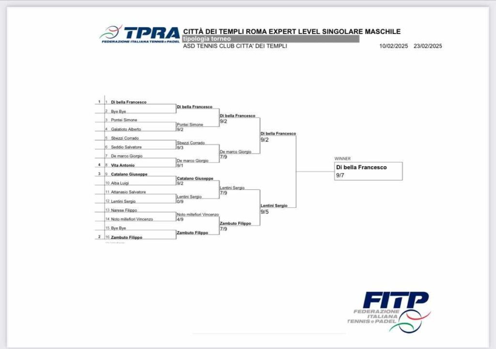 Le partite disputate al meglio di un unico lungo set che assegnava la vittoria al giocatore che raggiungeva i nove game. Alla premiazione erano presenti Andrea Platania in rappresentanza del Circolo organizzatore e il delegato provinciale del circuito Tpra, Roberto Gambina che ha premiato i due finalisti. La tappa è valevole per il circuito road to Roma.