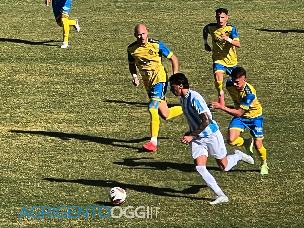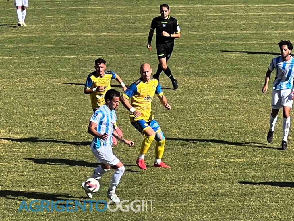 Il match si accende già al 10’, quando Lo Faso tenta la conclusione, ma Becchi della Scafatese è attento e blocca il pallone senza problemi. Il gol arriva al 20’: Rechichi pennella un assist perfetto per Palazzolo, che non sbaglia e porta l’Akragas in vantaggio.