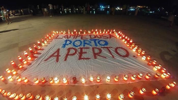 LAMPEDUSA. Un lenzuolo bianco con la scritta ‘Lampedusa porto aperto’ e attorno una cornice di lumini accesi: è il messaggio che dall’isola siciliana viene rivolto idealmente alla nave Diciotti della Guardia costiera, da 5 giorni al largo di Lampedusa con a bordo 177 migranti soccorsi e ancora senza un approdo.