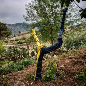 Carmelo e Salvatore Navarra nel Giardino del mito, spazio espositivo di arte contemporanea a San Biagio Platani, lanciano il loro appello contro la guerra realizzando due istallazioni un muro di colori e attraverso la rigenerazione di un tronco secco incatenato chiedono la libertà e l’autodeterminazione per Popolo Ucraino. Carmelo Navarra accompagna queste due istallazioni con un messaggio: