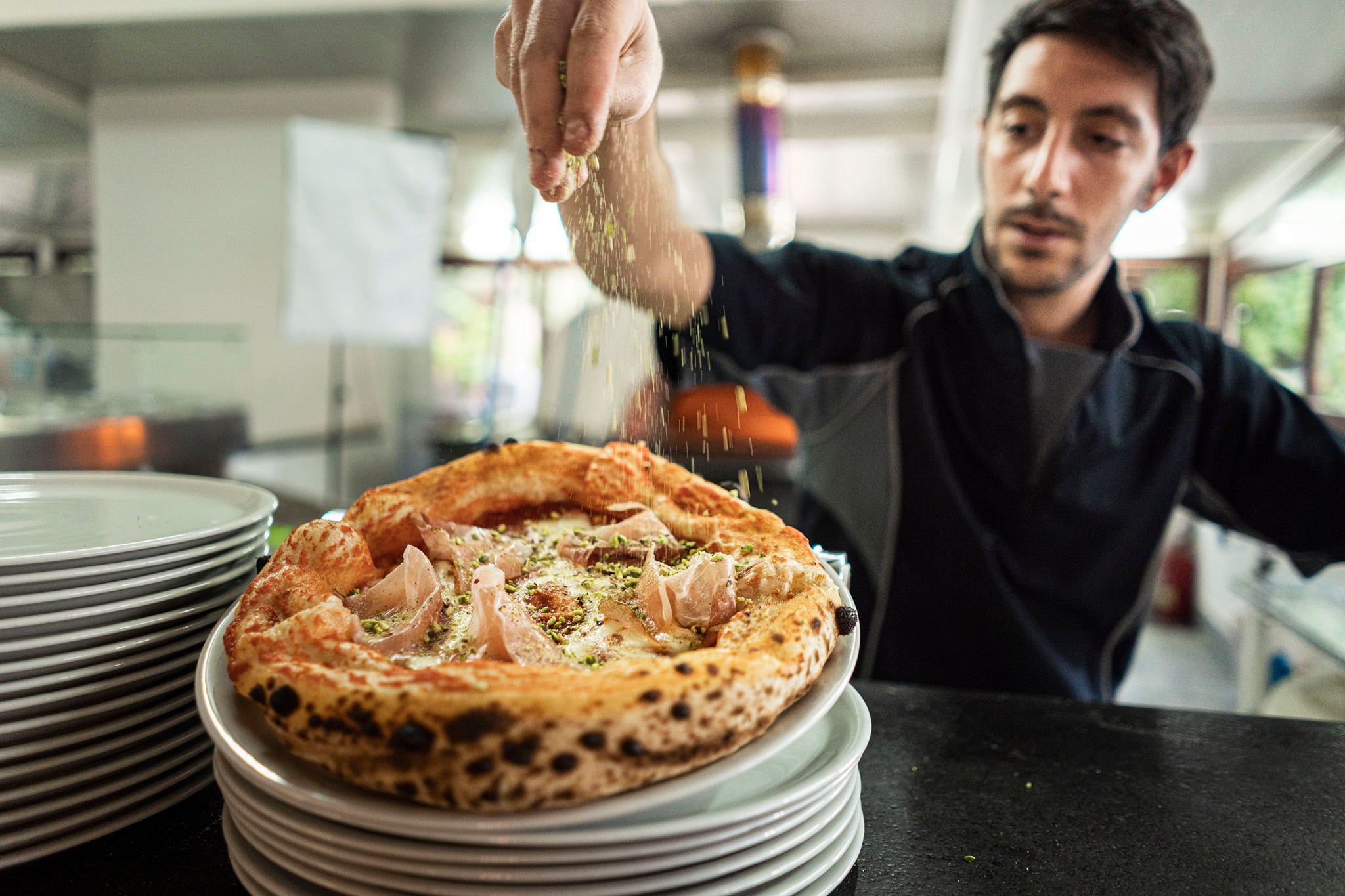 Le Fontanelle, situata a Raffadali, è molto più di una semplice pizzeria: è un’ambasciata delle pizze gourmet con ingredienti del territorio, in particolare il Pistacchio di Raffadali, che Vincenzo ha saputo valorizzare con creatività nelle sue prelibate pizze. Da un piccolo locale per la pizza da asporto, La Portaha trasformato l’attività di famiglia in un grande casale con oltre 350 coperti, tra gli spazi interni e le terrazze panoramiche che regalano una vista mozzafiato sulle colline circostanti. “È appena fuori Raffadali, ma sembra di essere immersi nella campagna”, racconta Vincenzo, descrivendo l’atmosfera rilassata che si respira soprattutto nelle serate estive.