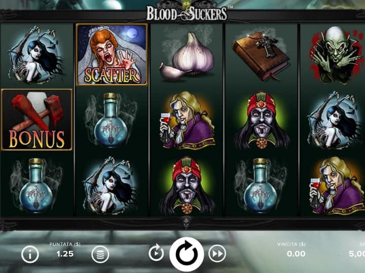 Blood Suckers, la video slot a 5 rulli e 25 linee di pagamento, è un titolo che cattura l’attenzione per il suo intrigante tema ispirato al mondo dei vampiri, accompagnato da una grafica tridimensionale di alta qualità.