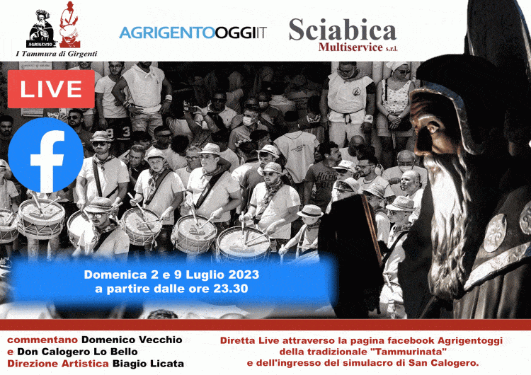 Siamo felici di annunciare un evento straordinario che si terrà domani sera, a partire dalle 23:30! Avremo il privilegio di offrirvi una diretta eccezionale, in collaborazione con l’Associazione i Tammura di Girgenti e Sciabica Service.