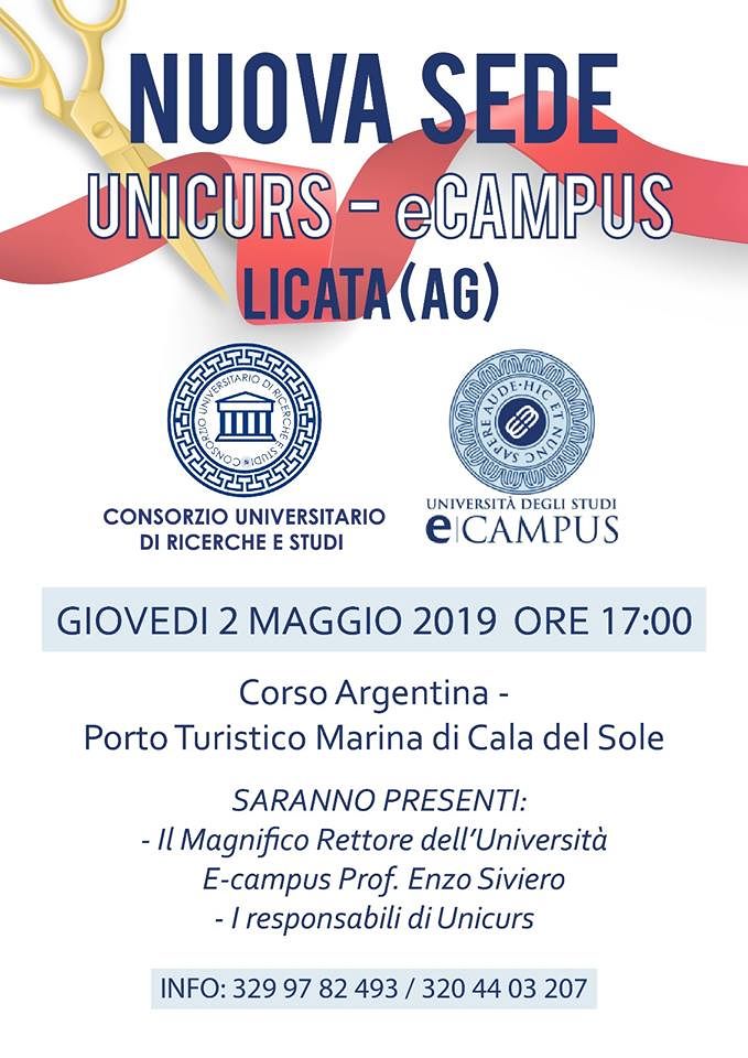 Si svolgerà il prossimo 2 maggio a Licata l’inaugurazione della nuova sede del Polo di studio dell’Università eCampus, sita in Corso Argentina-Porto Turistico Marina di Cala del Sole, alla presenza del magnifico rettore, prof. Enzo Siviero.