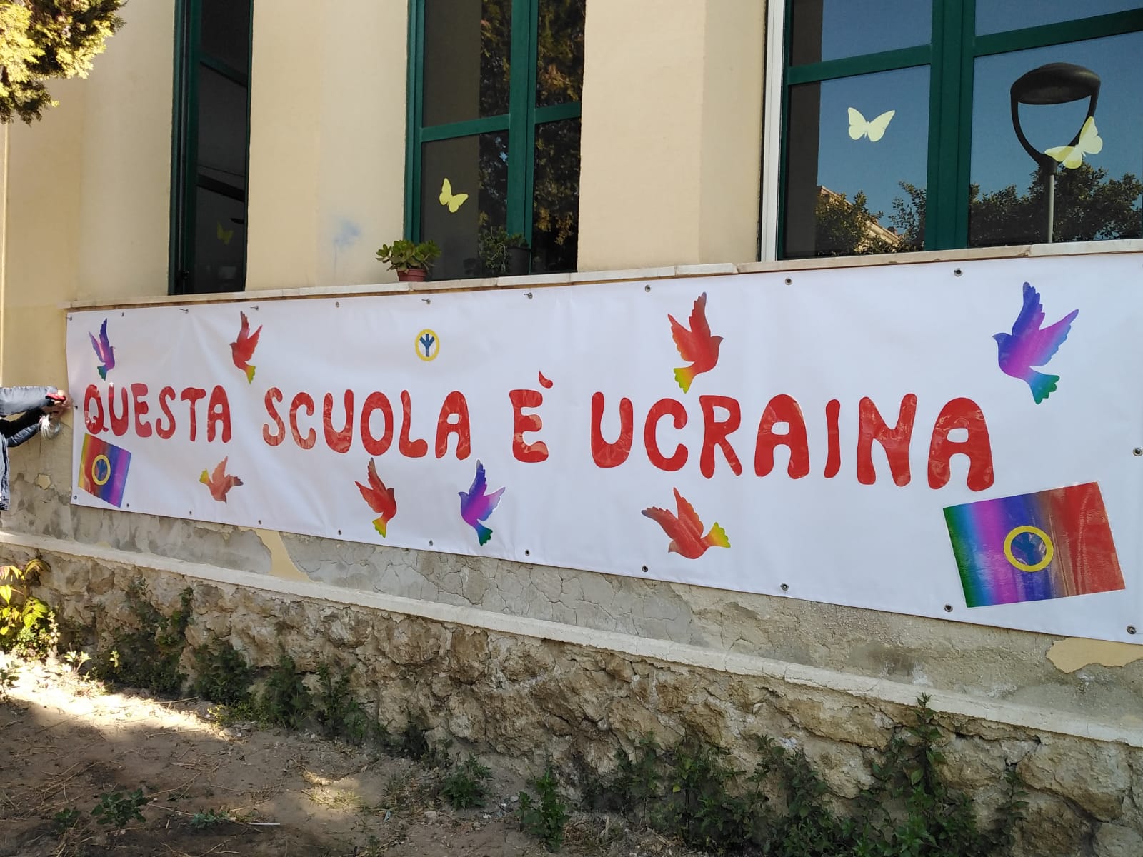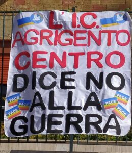 Alunne e alunni dell’Istituto Comprensivo “Agrigento Centro” hanno detto NO alla guerra, realizzando striscioni e cartelloni con i simboli della pace e i colori della bandiera ucraina che sono stati attaccati sui cancelli di ingresso e sulla facciata della scuola.