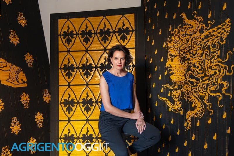 Luce e ombra, giorno e notte, vita e morte. Nel Libro 15 delle Metamorfosi di Ovidio, Pitagora parla di un universo in perpetuo divenire: «Vedi come le notti si distendono verso il giorno e come la luce abbagliante succede all’oscurità della notte. Il cielo ha un colore diverso quando tutte le cose stanche riposano a mezzanotte» (15.186–98). Nel suo immaginario, luce e oscurità non sono forze contrapposte bloccate in un ciclo di conquista, ma stati intrecciati in continuo movimento. Luminous Strays, installazione immersiva di Efi Spyrou è ospitata fino al 10 novembre all’ex conventino Chiaramontano di Agrigento, ed è tra i progetti portanti di Agrigento Capitale Italiana della Cultura; un spazio piccolo, raccolto, sacrale, ecclesiastico dove i sette pannelli intessuti e sospesi realizzati dell’artista cipriota, riescono a dar corpo a questa idea di abbraccio tra visibilità e occultamento, identità ed estraniamento. Ogni pannello è realizzato con stoffa nera e nastro altamente riflettente (lo stesso che si usa in autostrada per delimitare un’area) e richiama sia le pratiche tessili tradizionali sia la struttura digitale dell’immagine. I pannelli restano quasi impercettibili fino a quando non vengono illuminati da un flash, dall’obiettivo di una fotocamera o da un fascio di luce direzionato: a quel punto paiono animarsi e parlare allo spettatore.