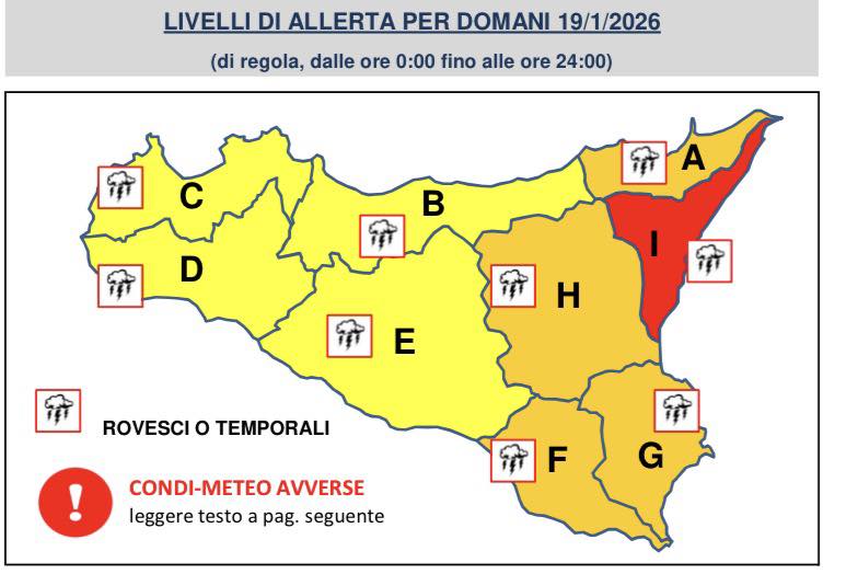 La Protezione civile Regionale ha confermato che lunedì 19 e martedì 20 gennaio le condizioni meteo saranno avverse. In provincia di Agrigento è stata diramata l’allerta gialla. Per precauzione numerosi sindaci agrigentini stanno provvedendo a chiudere le scuole pubbliche e private, i parchi e tutte le aree di pertinenza pubblica. Dopo il sindaco di Agrigento, altri primi cittadini con proprie ordinanze hanno chiuso tutte le scuole di ogni ordine e grado degli istituti scolastici pubblici e privati.