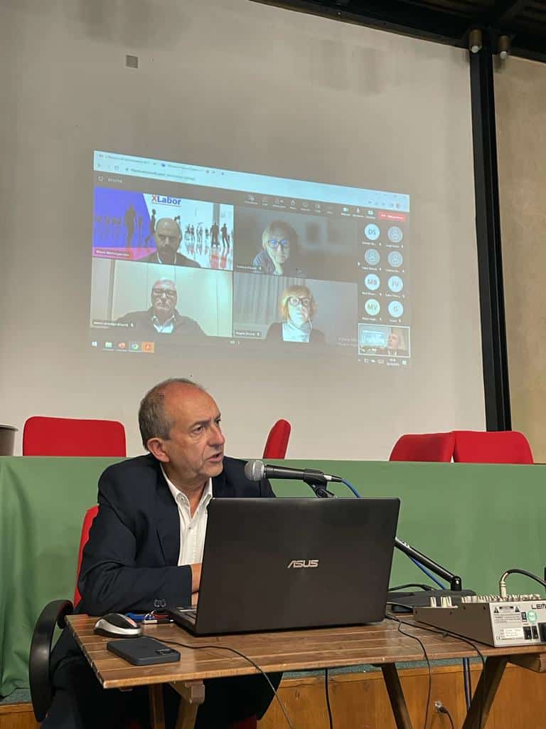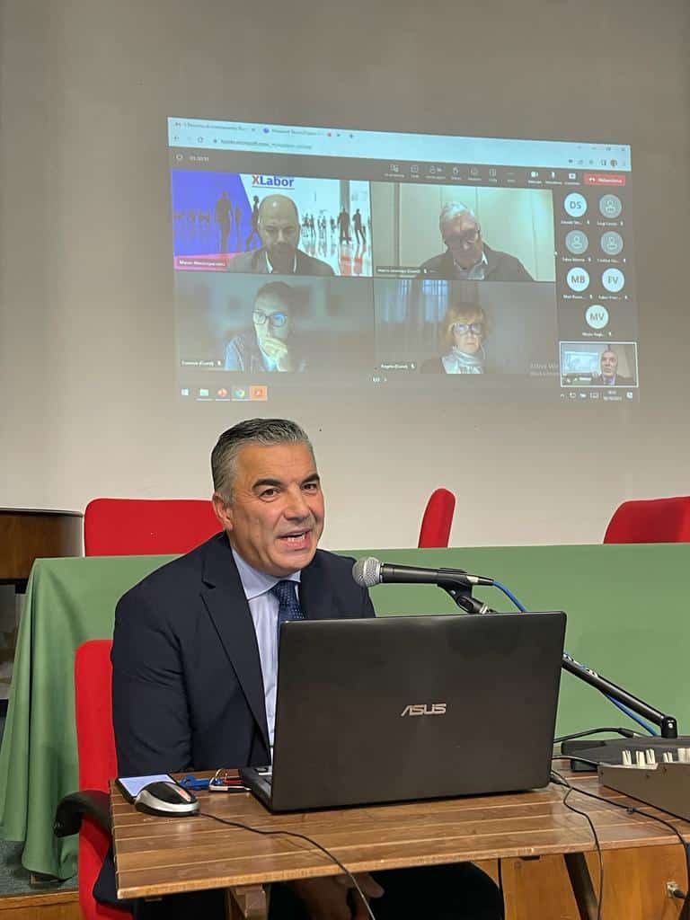 Mauro Mastrogiacono, direttore di X-Labor, collegato da Milano, è intervenuto per sottolineare le nuove opportunità di lavoro esistenti per i professionisti, tra cui anche la qualificazione di “innovation manager” che X-Labor è in grado di offrire agli associati.