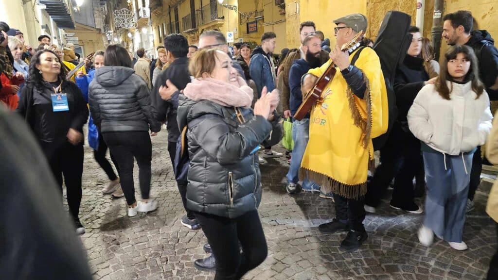 In questo contesto si inserisce per la prima volta lo strepitoso successo dello “Street Folk Festival” di ieri sera. La Sagra ha incontrato i giovani, ma anche tanti meno giovani e turisti. Diversi gruppi folk internazionali hanno invaso la via Atenea e Porta di Ponte, quasi uno per ogni locale, ed insieme agli agrigentini hanno bevuto, ballato e cantato insieme. Il salotto cittadino per ore è stato palcoscenico per esibizioni, balli e canti.