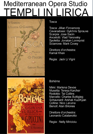 Templi in Lirica è un avvenimento internazionale di grande rilievo artistico, con la partecipazione dei cantanti, dei direttori d’orchestra e dei musicisti della Mediterranean Opera Studio , che metteranno in scena due opere liriche entrambe di Giacomo Puccini la prima, in data il 24 luglio 2017 con Tosca diretta da Kamal Khan ,regia di Jack Li Vigni , la seconda, il 25 luglio con La Bohème diretta da Leonardo Catalanotto con la regia di Nelly Miricoiu .