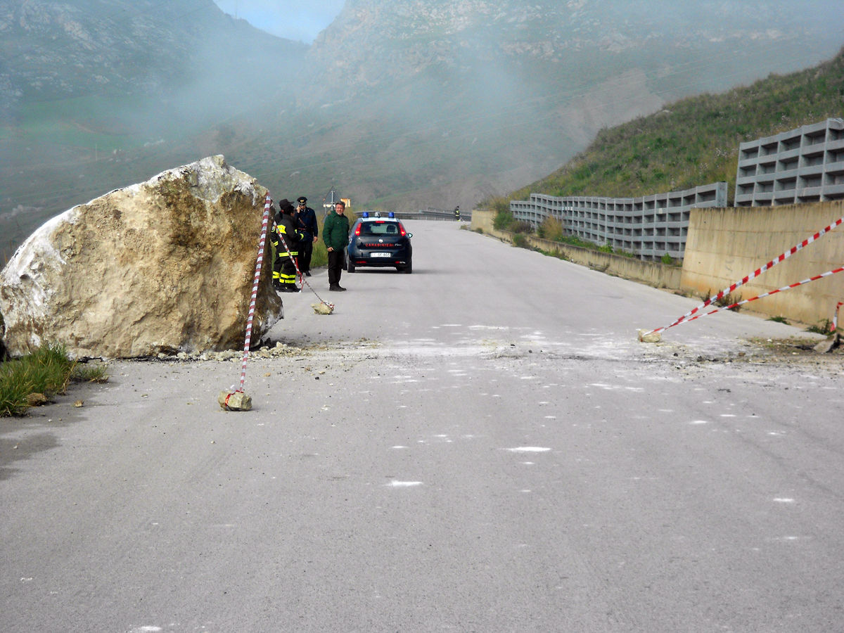 Situazione dramatica, sulla Strada Provinciale n. 22 Stazione Campofranco (SS189) – Cozzo Disi – Casteltermini, che da ieri, con Ordinanza n. 10 del Settore Infrastrutture Stradali, è stata ufficialmente chiusa al traffico dal km 1+050 al km 2+430 in seguito al distacco di un grosso masso e di materiale terroso da un costone roccioso sovrastante la strada.