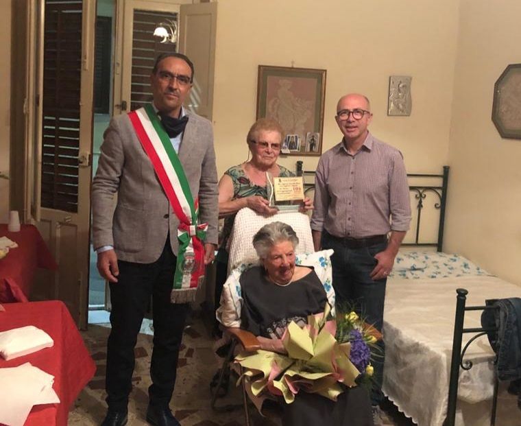 Il sindaco di Castrofilippo Francesco Badalamenti ha festeggiato, una sua concittadina che ha compiuto sabato scorso 104 anni. Si tratta della signora Concetta Baio nata il 18 luglio del 1916.