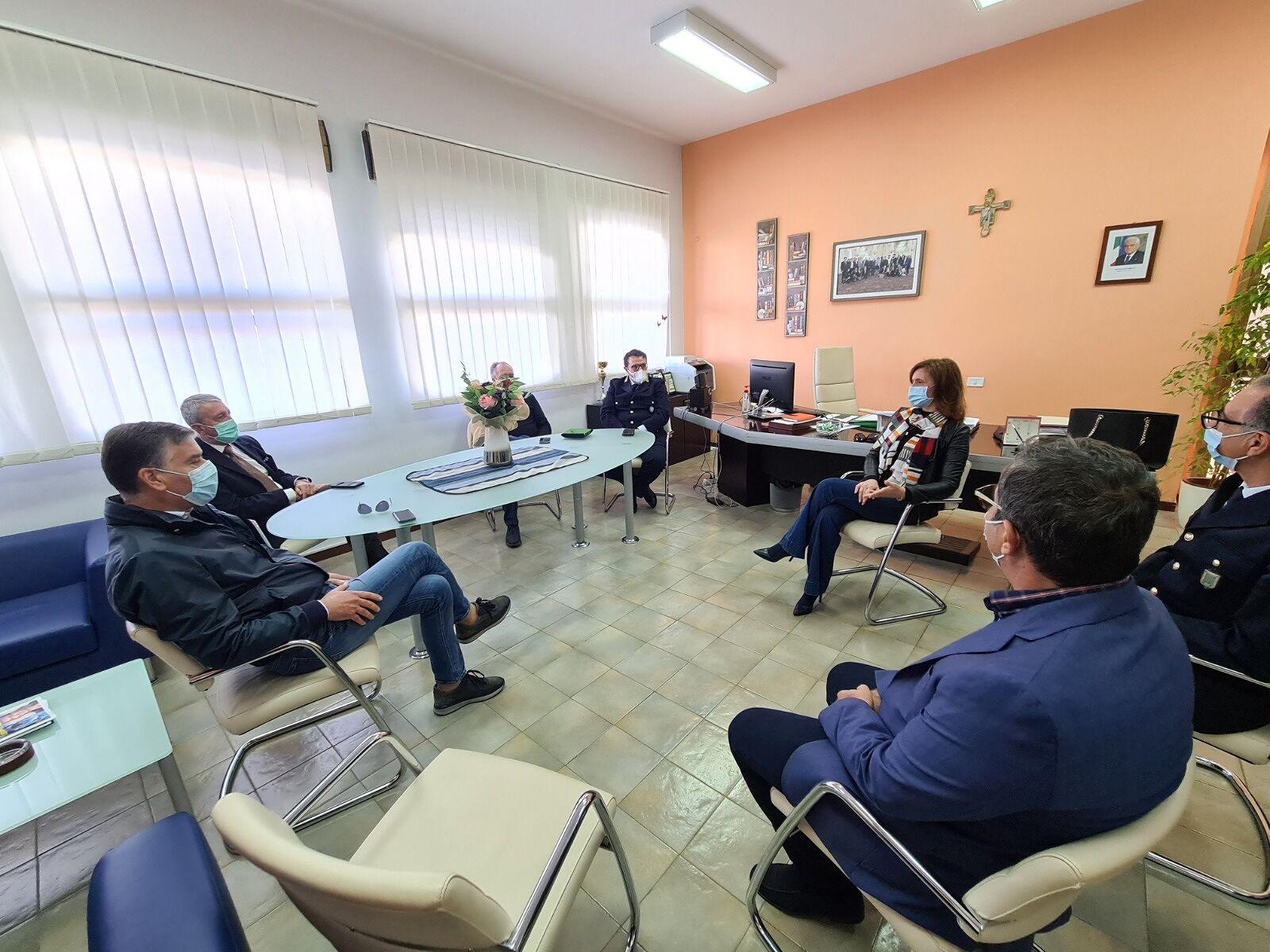 AGRIGENTO. Visita di cortesia questa mattina del sindaco Franco Miccichè all’istituto professionale Enrico Fermi nell’area Asi. Con lui il vicesindaco Aurelio Trupia, l’assessore Nino Costanza e il comandante della Polizia municipale col. Gaetano Di Giovanni. Ad accoglierlo la preside Elisa Maria Enza Casalicchio. E’ stata l’occasione per visitare la sede dove attualmente si svolgono solo laboratori perché le lezioni si svolgono da remoto e per fare il punto sulla sede di via Piersanti Mattarella, che è stata evacuata per problemi strutturali e che ora verrà recuperata.