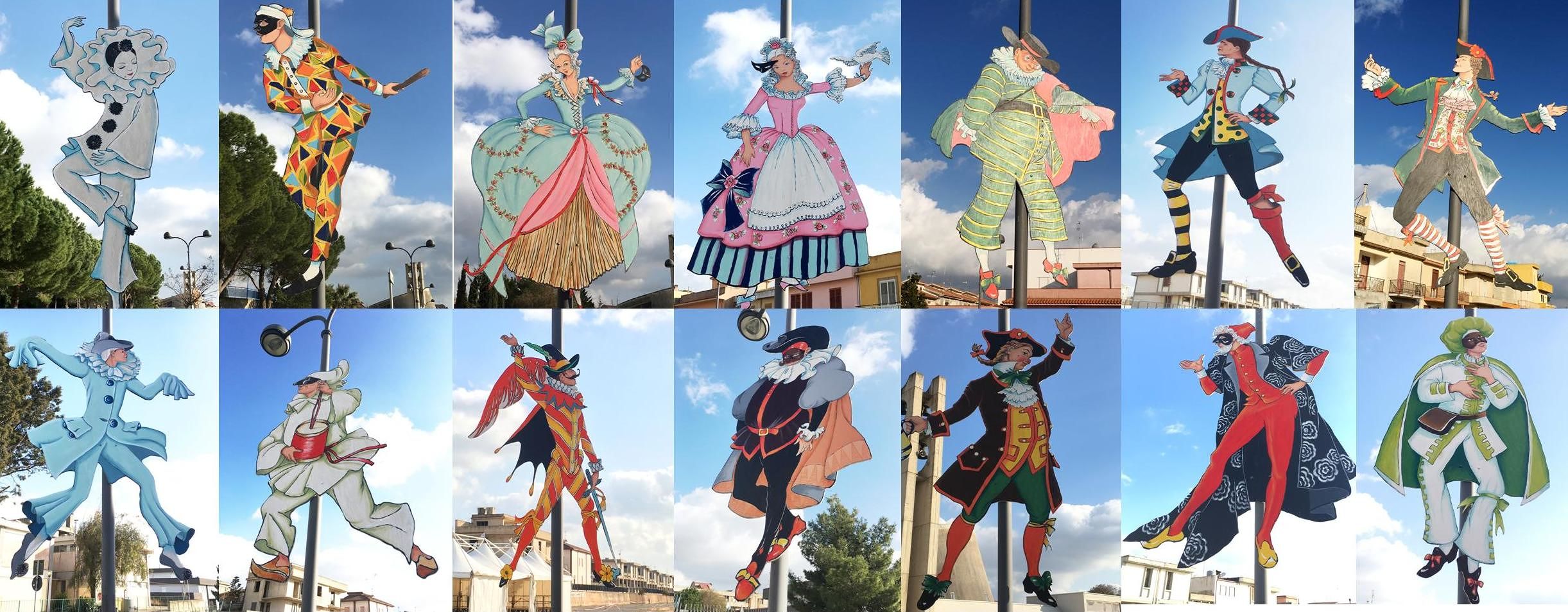 “Abbiamo riproposto – spiega Paolo Manno – le vecchie maschere tradizionali di una volta di diverse regioni italiane soprattutto per farle conoscere ai giovani d’oggi che non le conoscono più. E’ un modo per valorizzare la tradizione e tramandarla alle giovani generazioni attraverso l’arte e alcuni dei simboli del nostro patrimonio culturale. Abbiamo realizzato 14 maschere, tra le più significative, come Pulcinella, Arlecchino, Peppe Nappa, Colombina, Pierrot e via dicendo. Le opere, esposte lungo il viale XV gennaio, sono realizzate in fenolico, un multistrato marino resistente all’acqua e all’umidità, poi sono stati trattati con smalti all’acqua per esterno”.