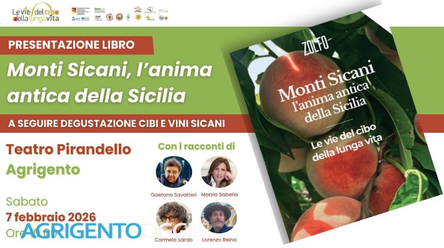 Il Teatro Pirandello di Agrigento ospiterà sabato 7 febbraio, alle ore 10, la presentazione di “Monti Sicani, l’anima antica della Sicilia”, il volume pubblicato da Zolfo Editore che riunisce i racconti di Gaetano Savatteri, Marzia Sabella, Carmelo Sardo e del compianto Lorenzo Reina. Un viaggio letterario nel cuore più autentico della Sicilia, tra memoria, identità e tradizioni alimentari.