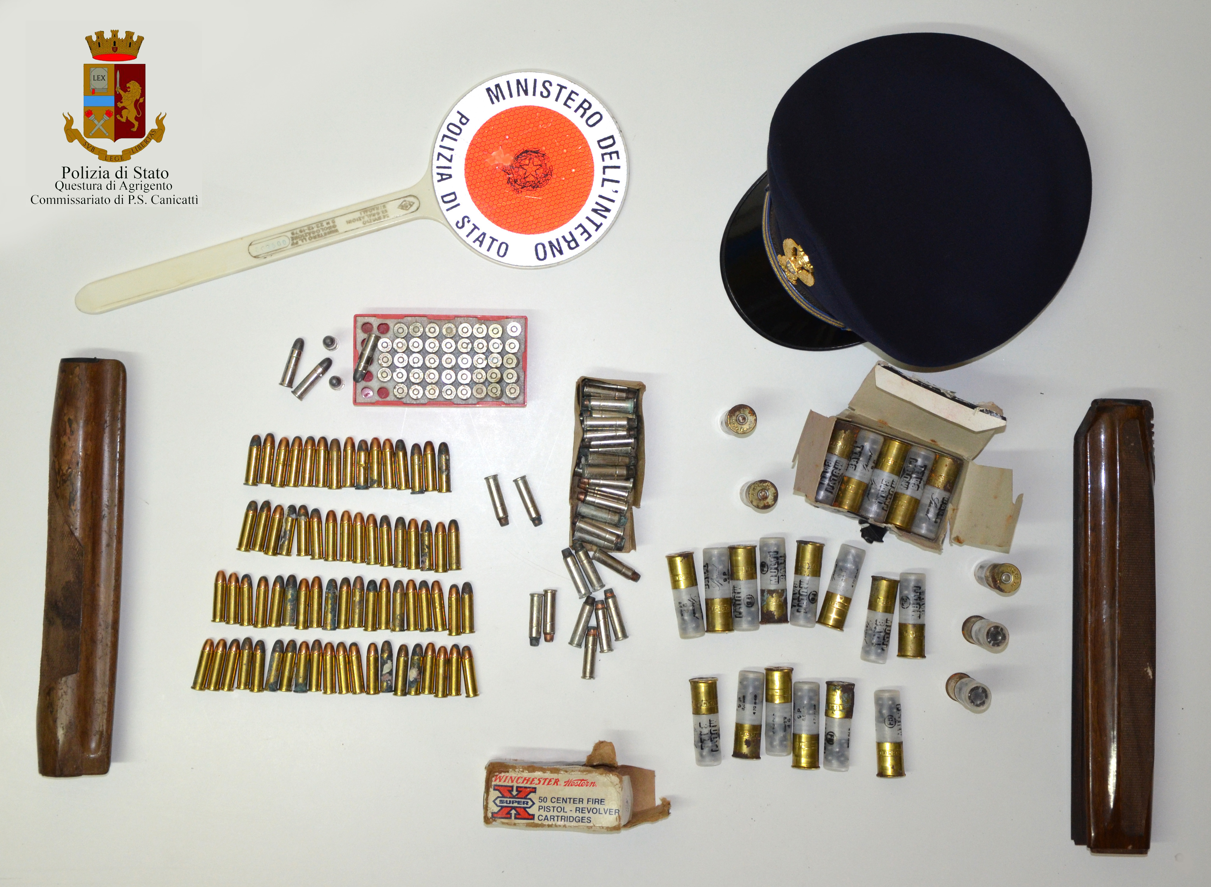 CANICATTI’. Quasi 200 tra cartucce per fucili da caccia e per revolver , oltre a 2 aste poggia mano per fucili da caccia sono state rinvenute e sequestrate, dagli agenti della sezione Anticrimine del Commissariato di Canicattì, coordinati dal dirigente, il  dottore Cesare Castelli, abilmente nascoste in un casolare in stato d’abbandono nella zona rurale di contrada Buccheri.
