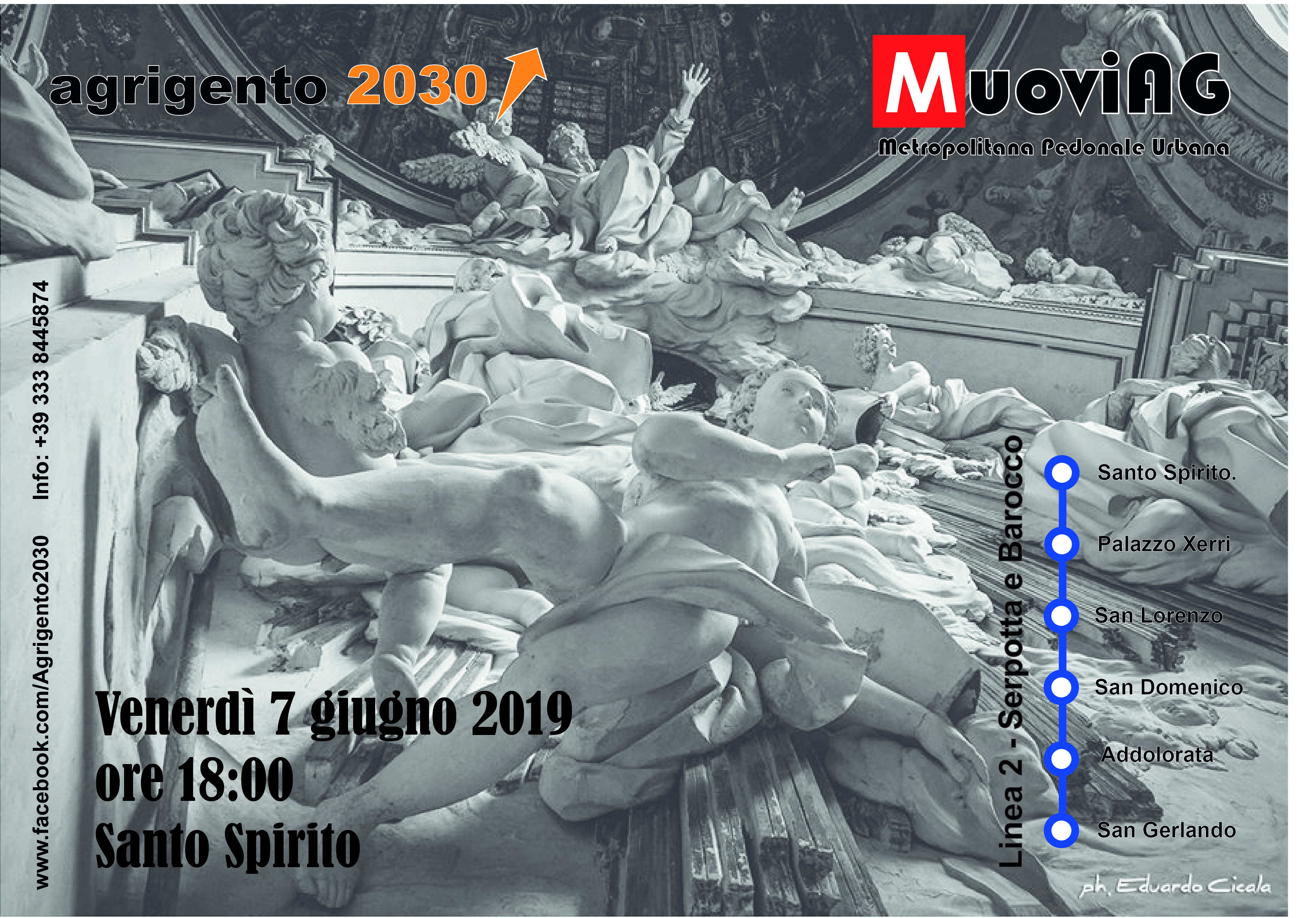 Questa sera venerdì 7 giugno alle ore 18 con partenza da Santo Spirito secondo appuntamento con il progetto della “Metropolitana Pedonale Urbana”, #MuoviAG con l’itinerario del Serpotta e del Barocco.