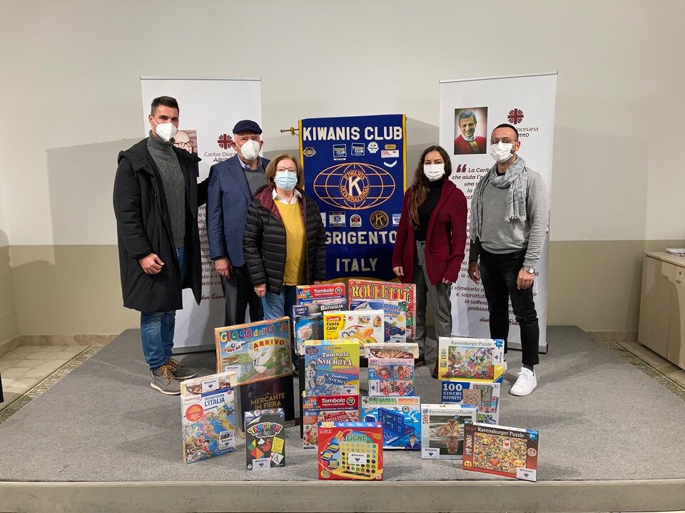 AGRIGENTO. Il Kiwanis club di Agrigento, in occasione del periodo di Avvento, promuove una nuova iniziativa rivolta, come sempre, ai bambini. Il club service, al fine di regalare momenti di svago ai giovanissimi, ha donato diversi giochi da tavolo alla Fondazione Mondoaltro, braccio operativo di Caritas Diocesana Agrigento, che nonostante le limitazioni a causa della pandemia e con le dovute precauzioni, ha continuato a prestare i propri servizi. La Fondazione provvederà ad utilizzare i giochi, ricevuti in omaggio, nell’ambito delle attività interculturali che prevedono laboratori e sostegno scolastico in favore dei minori del progetto “Alveare”. La consegna dei regali è avvenuta alla presenza del Direttore Valerio Landri e della referente del progetto “Alveare” Giusy Santino per la Fondazione, mentre, per il club Kiwanis di Agrigento una delegazione guidata dal Presidente Francesco Zicari con i soci Sara Incardona e Roberto Campagna.