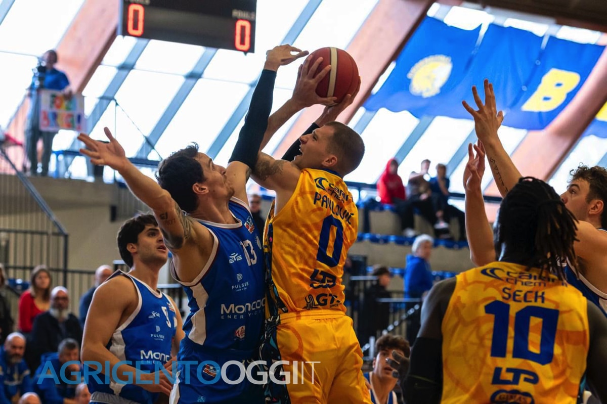 Il rientro dagli spogliatoi è favorevole ad Agrigento, che parte con un altro break. Venturoli prova a stoppare l’emorragia con una tripla che porta il punteggio in parità (37-37) al 22’. La guardia gialloblu si accende, mentre Agrigento, pur mostrando grande intensità sotto canestro, deve confrontarsi con un preoccupante 1/15 al tiro da tre.