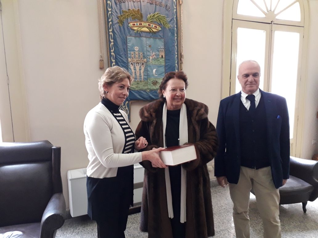 La signora Pirandello ha visitato alcuni ambienti dell’Ottocentesco “Magnifico Palazzo della Provincia e della Prefettura”, come, ad esempio, l’Aula consiliare “L.Giglia”, la Galleria della Scala Reale, la sezione espositiva dell’Ecomuseo e la biblioteca “G. Ambrosini” che conserva una copia del “Manifesto” dell’Illuminismo: l’Encyclopèdie di Diderot e D’Alembert.