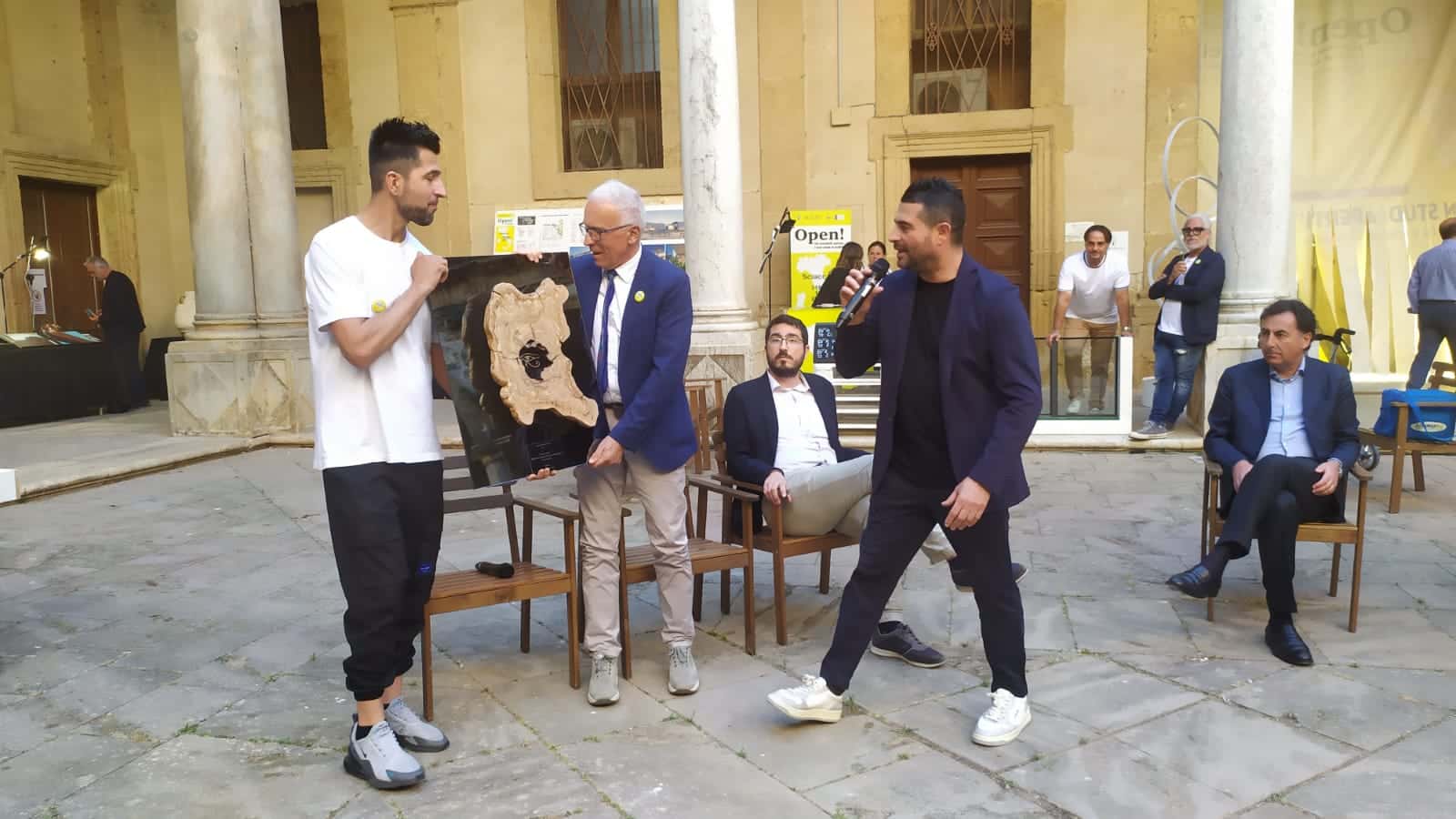 Durante i lavori, aperti dalla lettura di un brano a cura dell’architetto Salvatore Catanzaro, l’artista Angelo Adriano Morrealese ha donato all’ordine degli architetti una scultura realizzata in cedro del Libano, una scelta del legno non casuale attraverso la quale l’artista mira a riavvicinare l’uomo alla natura.